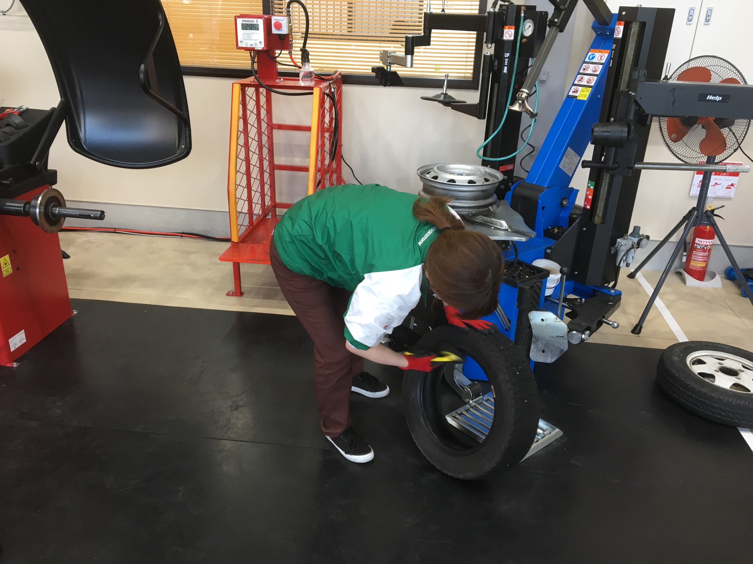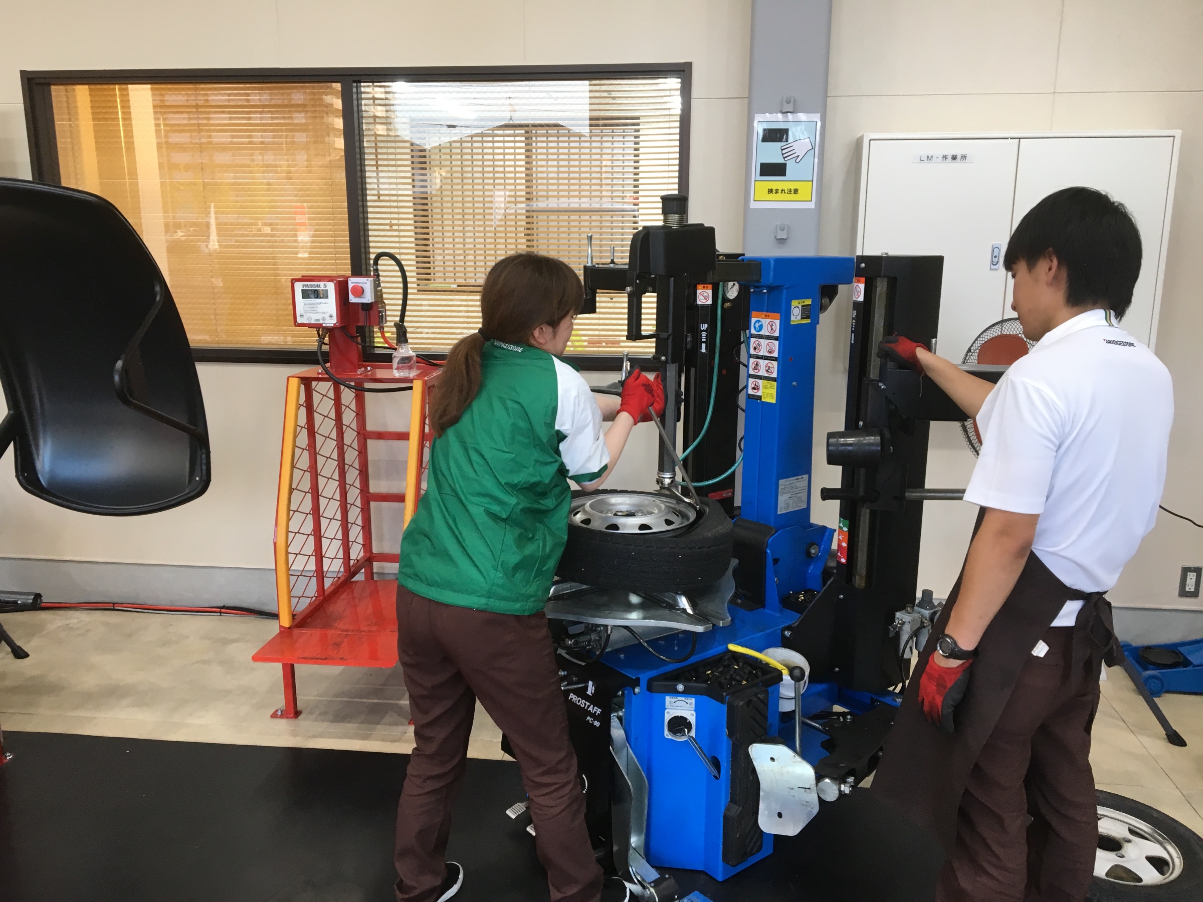 そんな思いから初めてのタイヤ交換を学んでくれてますp(´∇`)q ファイトォ~♪