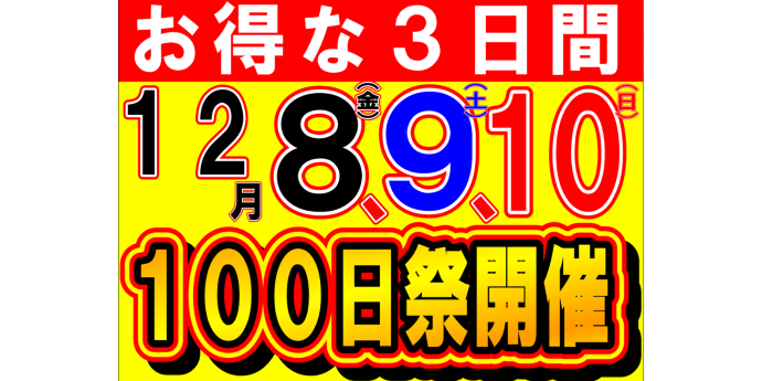オープン100日記念祭を開催致します♪