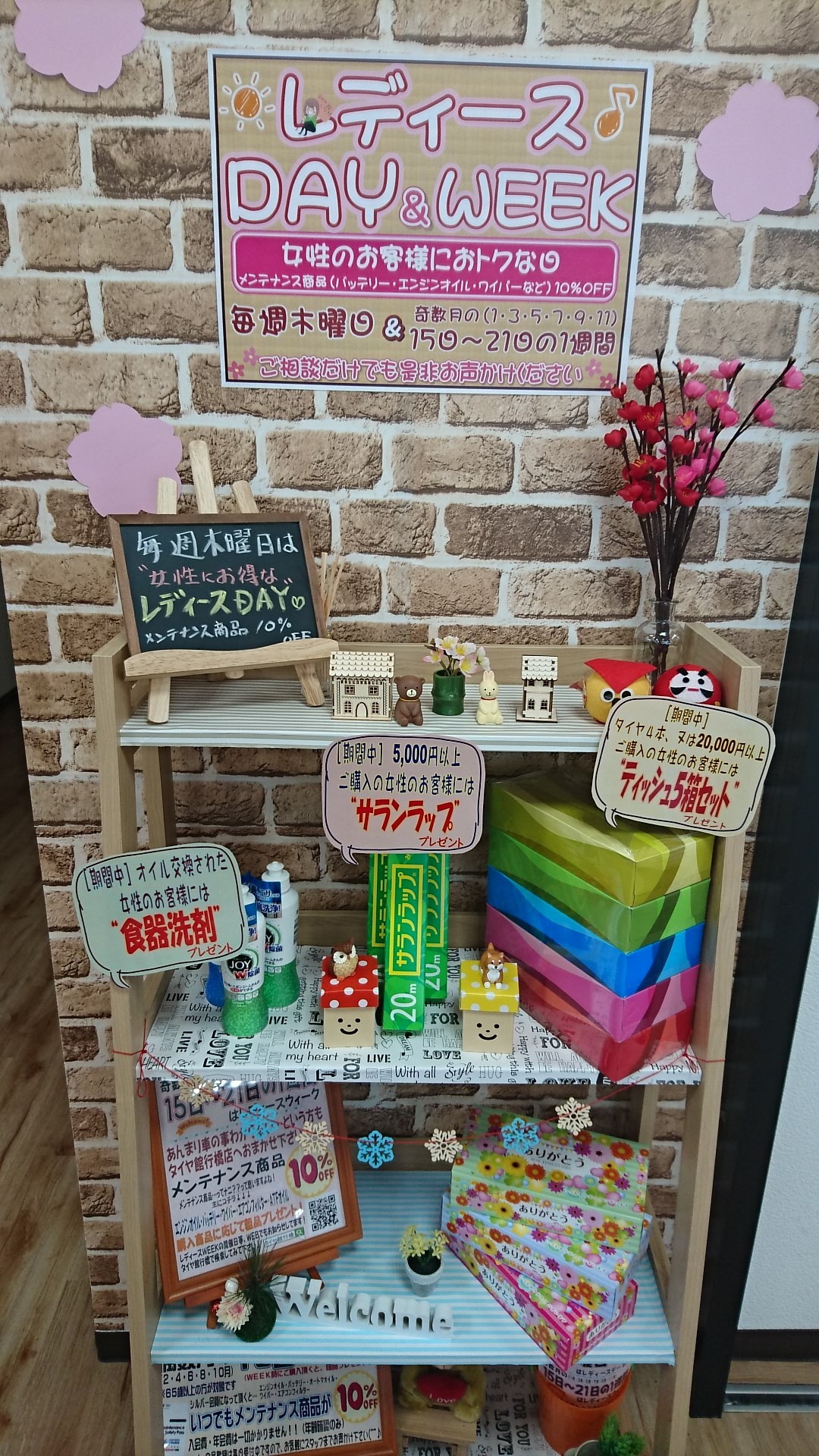 ♡毎週木曜日♡ ポスト 2018年4月5日 こんにちは :*・゚☆ タイヤ館 行橋店です:*・゚☆ 本日もやりますよー!! 毎週木曜日!!女性にお得なレディースDAY♥ メンテナンス商品(オイル・バッテリー・ワイパーなど) 店頭表示価格より10%OFF♬♫♬ 点検だけでも是非起こしくださーい!! 担当:シマヅ