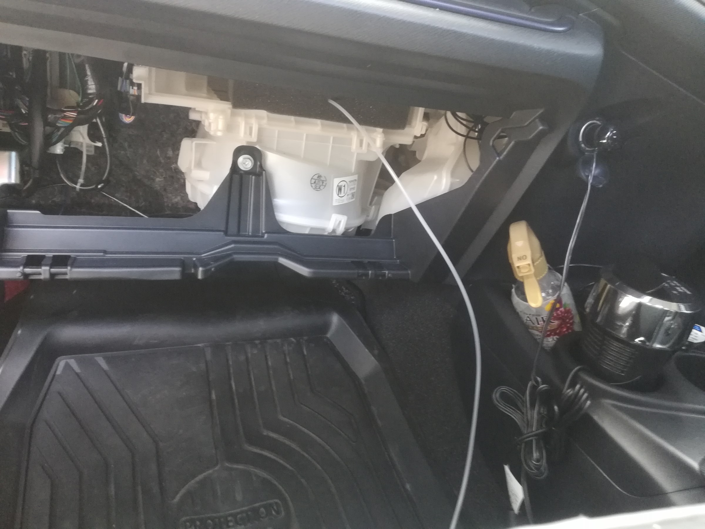 ↑ エアコンフィルター装着口に車内に特殊ノズルを設置。