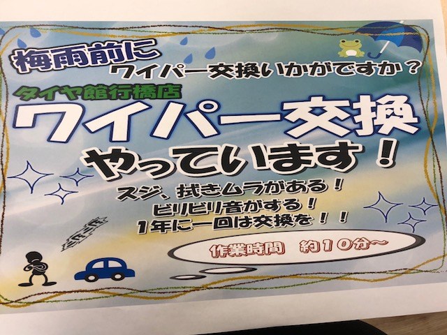 タイヤ館行橋ではワイパー交換も行なって おります。