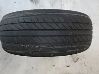 こんにちは、池見です(^^) こちらのタイヤは大変危険な状態です! コードが出ているのがお分かりでしょうか? ここまで使用されるとバースト(破裂)の恐れがあり大変危険です(;;) また雨の日などで濡れた路面では滑りやすくなっており危ないですよ! タイヤがこうなる前に安全の予防として...