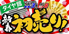 こんにちはタイヤ館行橋店の池見です! 皆様、正月はどのようにお過ごしでしょうか? タイヤ館行橋店では、明日3日(水)から 新春初売りセールを開催いたします(^^) お楽しみ福袋などのプレゼントがありますので 詳しくはTOPページよりセール情報をご確認下さい! スタッフ一同、ご来店心よ...
