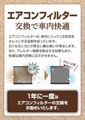 エアコンから出る風は、すべてエアコンフィルターを通って出てきます。 家のエアコンやヒーターと一緒で、定期的なフィルターの点検を しましょう 花粉やホコリなどの微粒子を除去したり、 排気ガスやタバコなどのイヤな臭いをカットする等、 花粉症の方やお子様がいらっしゃる奥様などには特におす...
