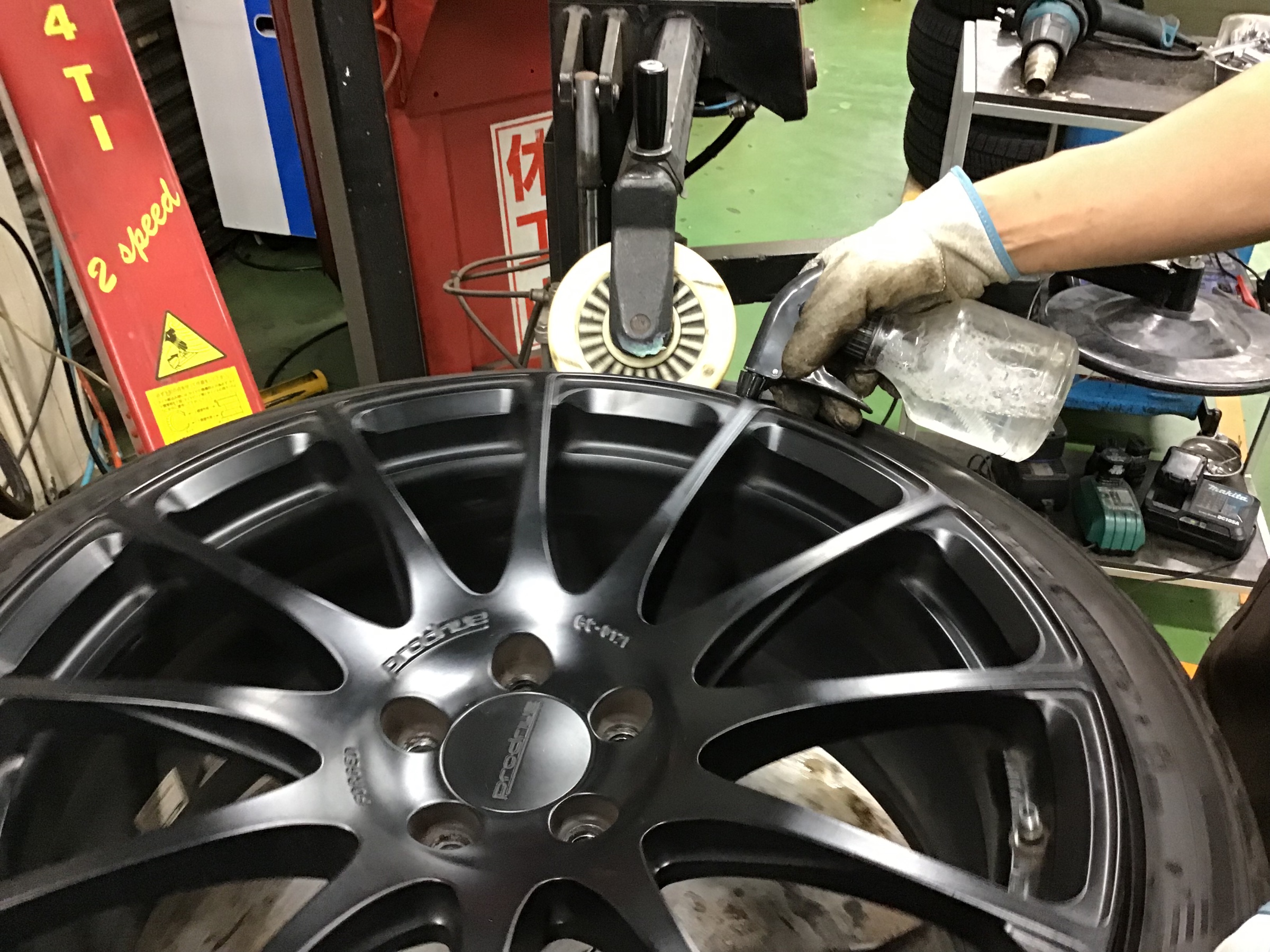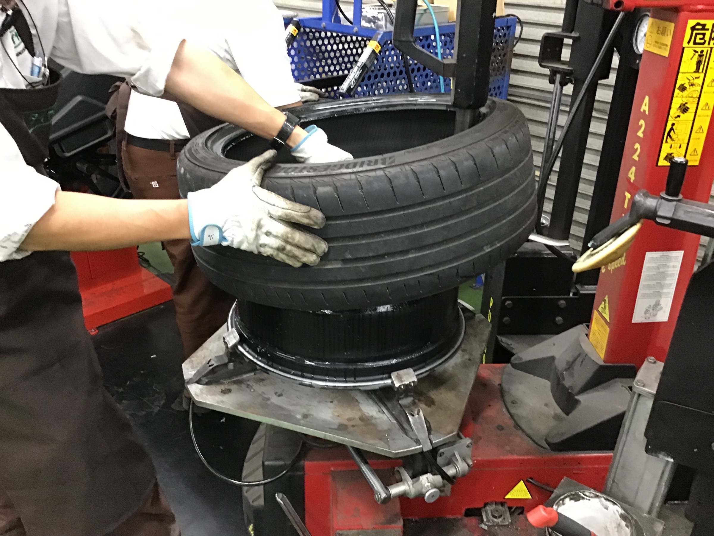 ホイールからタイヤを外すんですが、扁平タイヤでサイズも大きいので