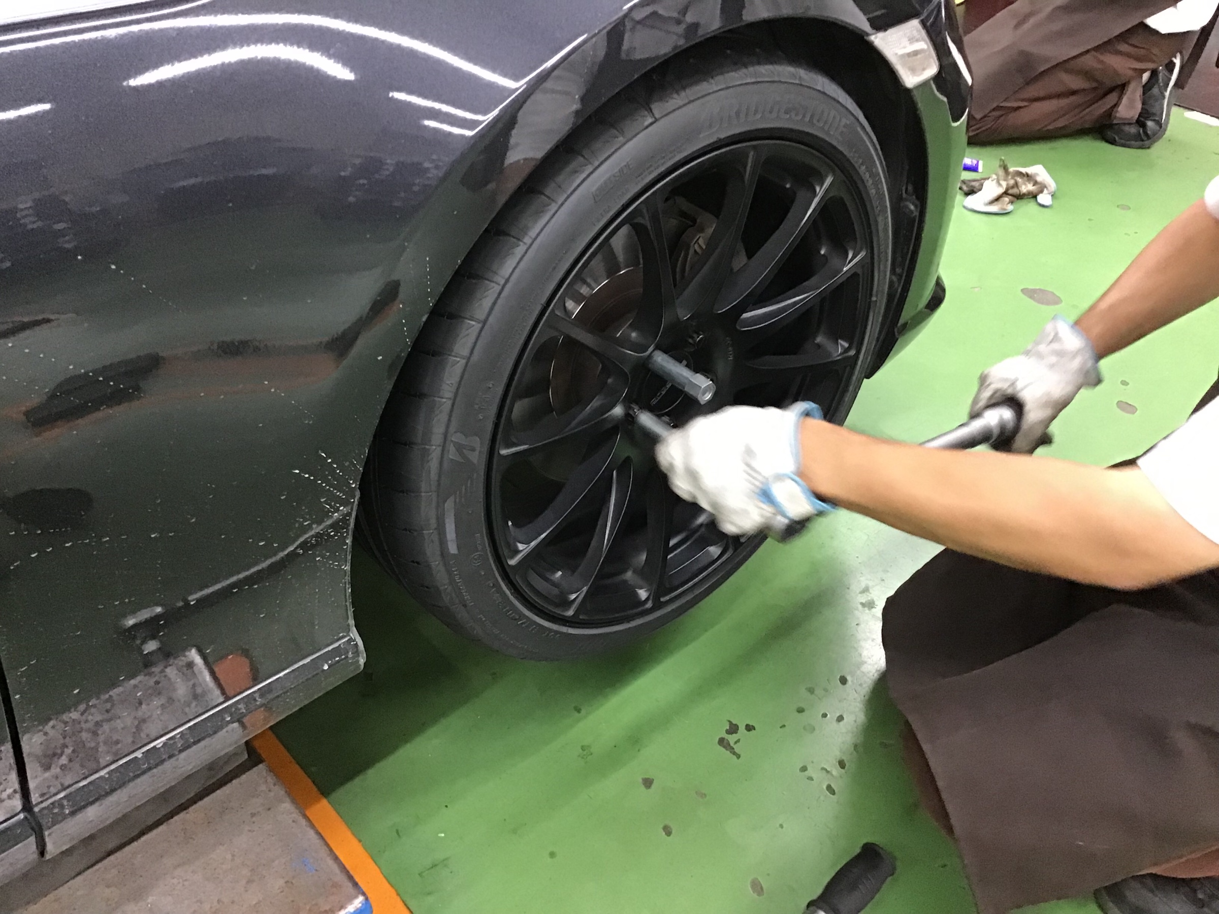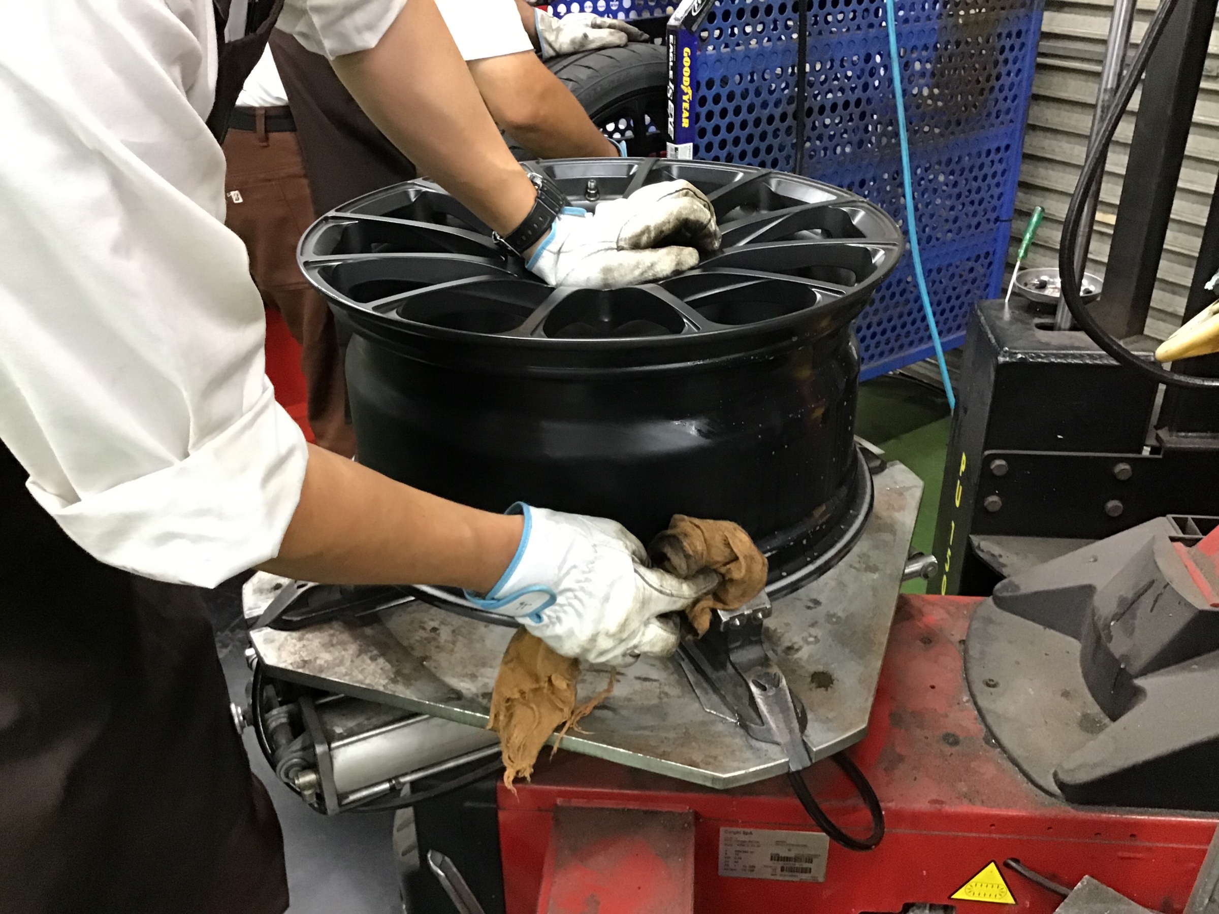 補助を使いつつ、ホイールに傷をつけないように慎重に行います