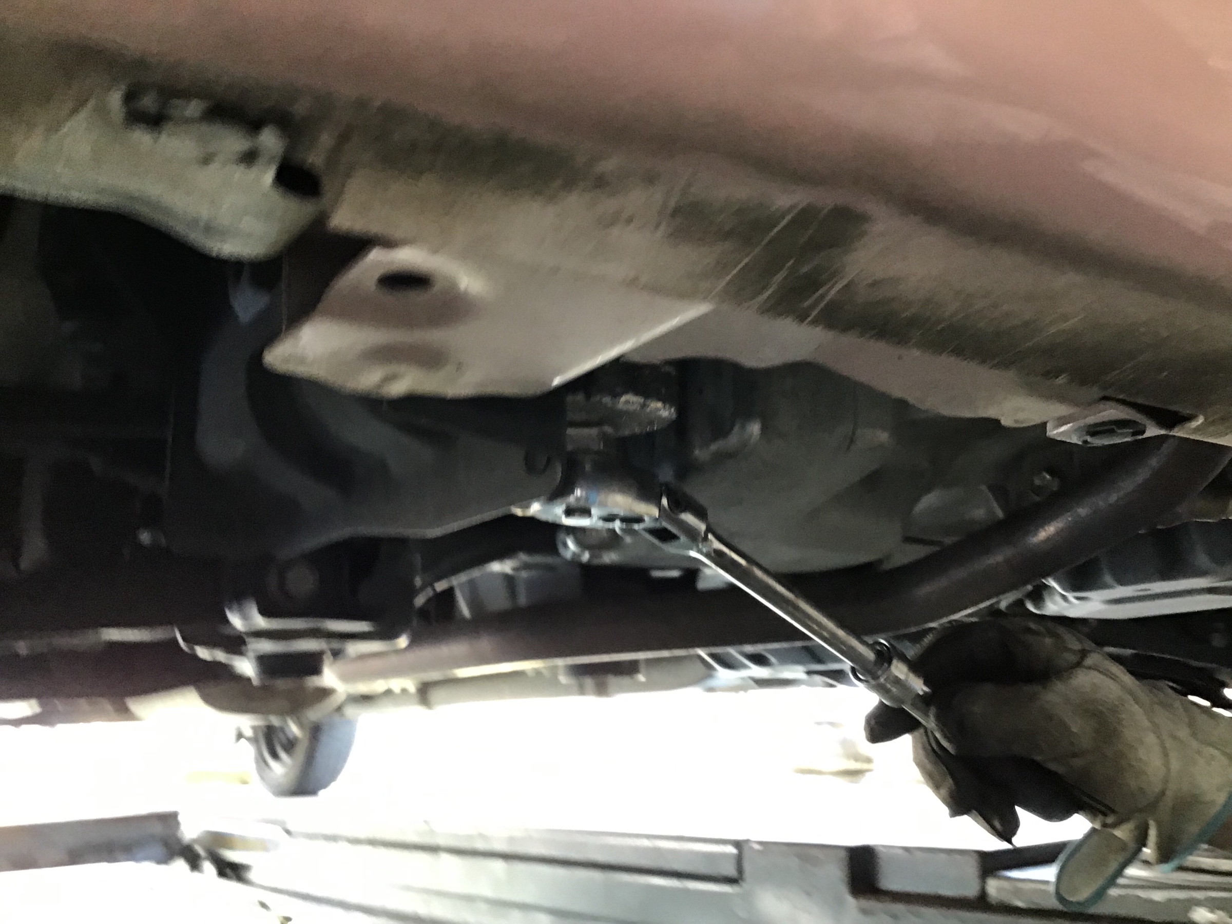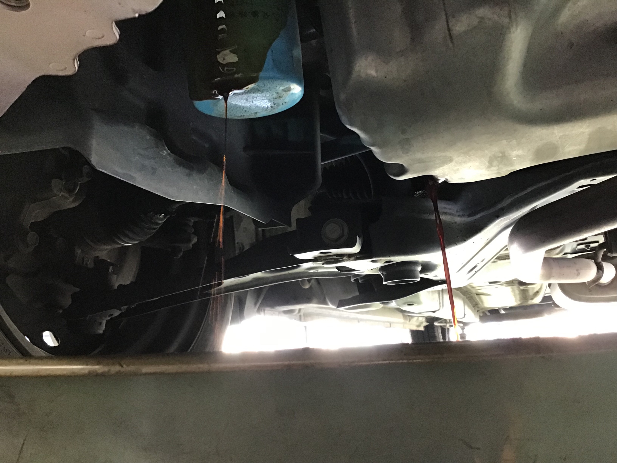 今回はエレメントも交換なのでリフトを上げて、ボルトを外してオイルを抜きます