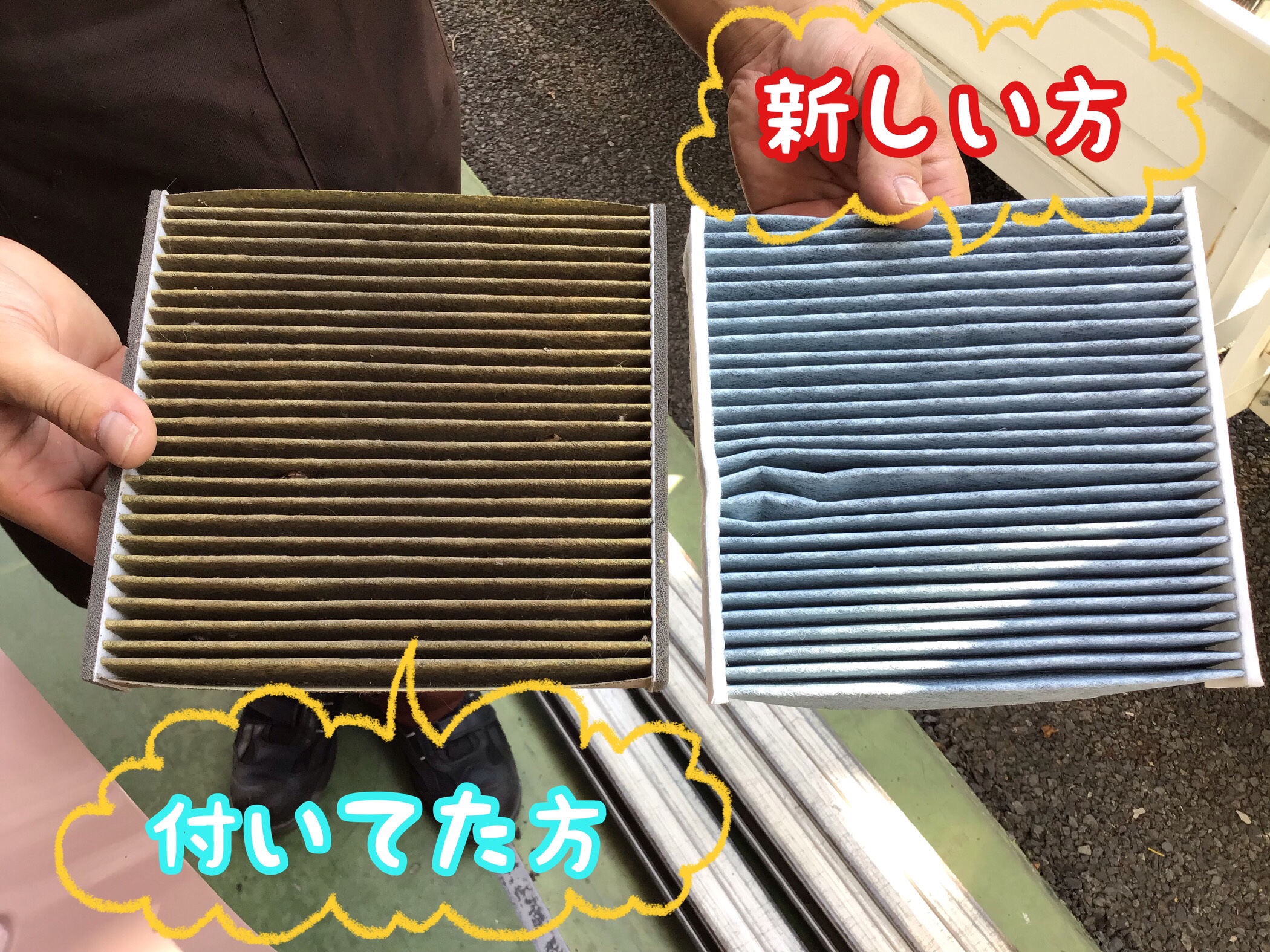 エアコンフィルター、バッテリー交換作業のご紹介です