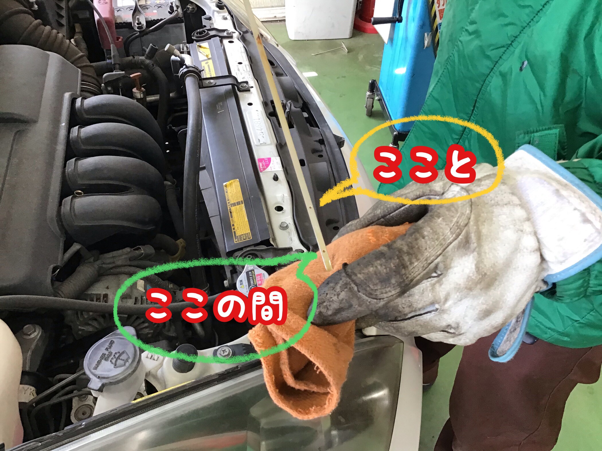 中間から少し上くらいまでオイルがついたら規定量入っています