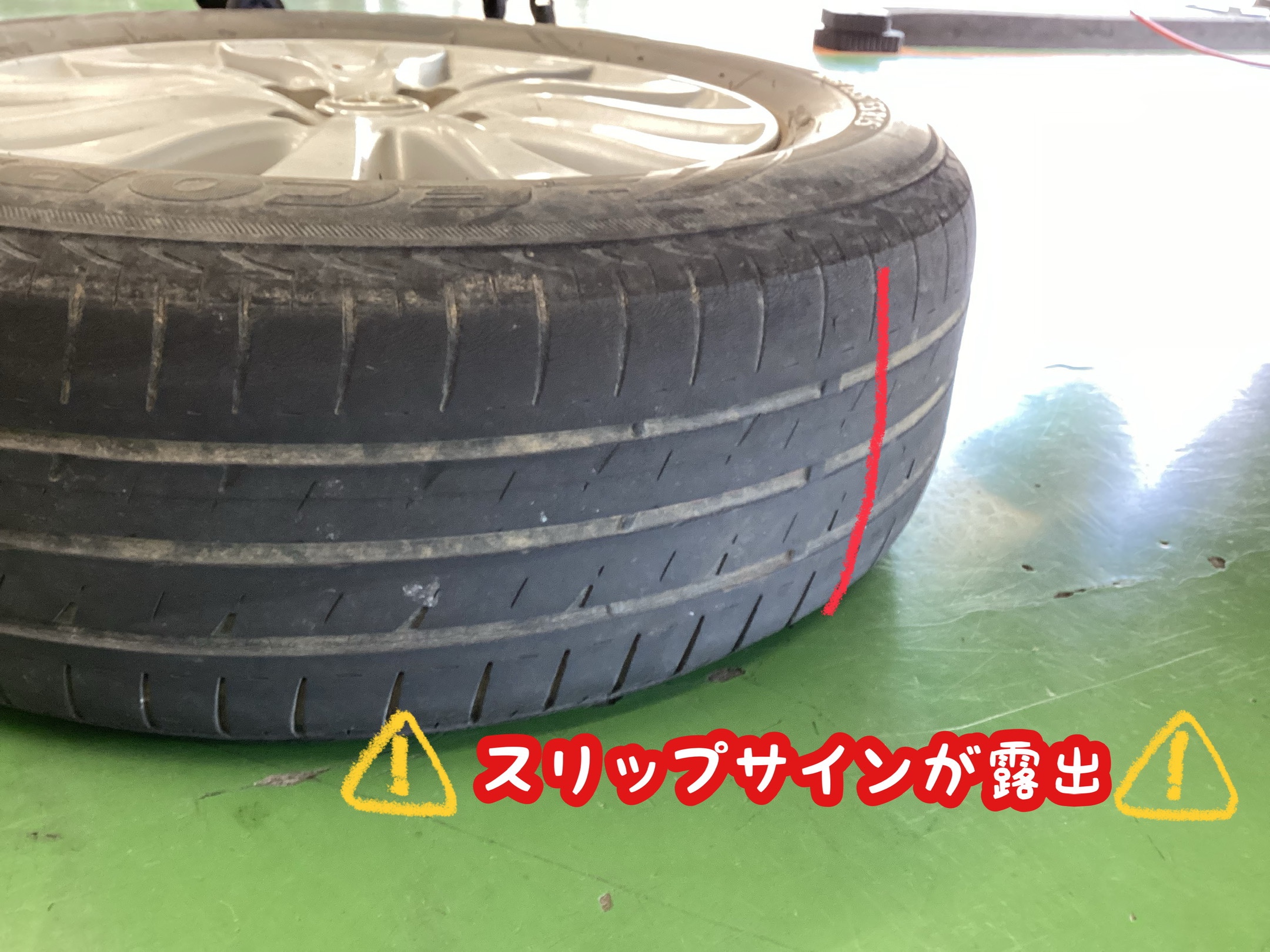 何よりスリップサイン(安全に使用できる目安)がほぼ完全に出てしまっています