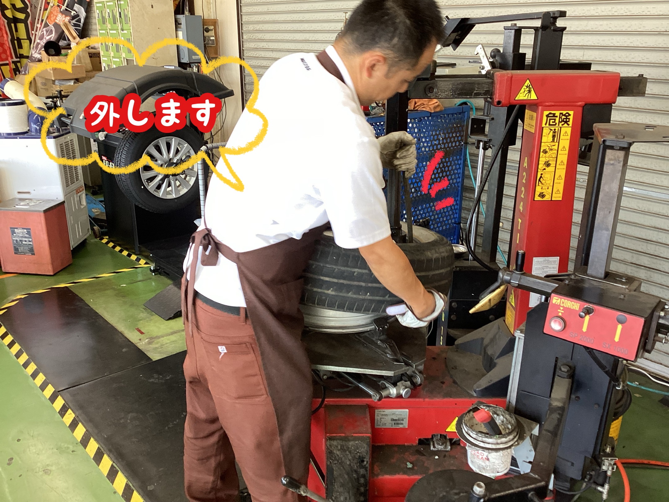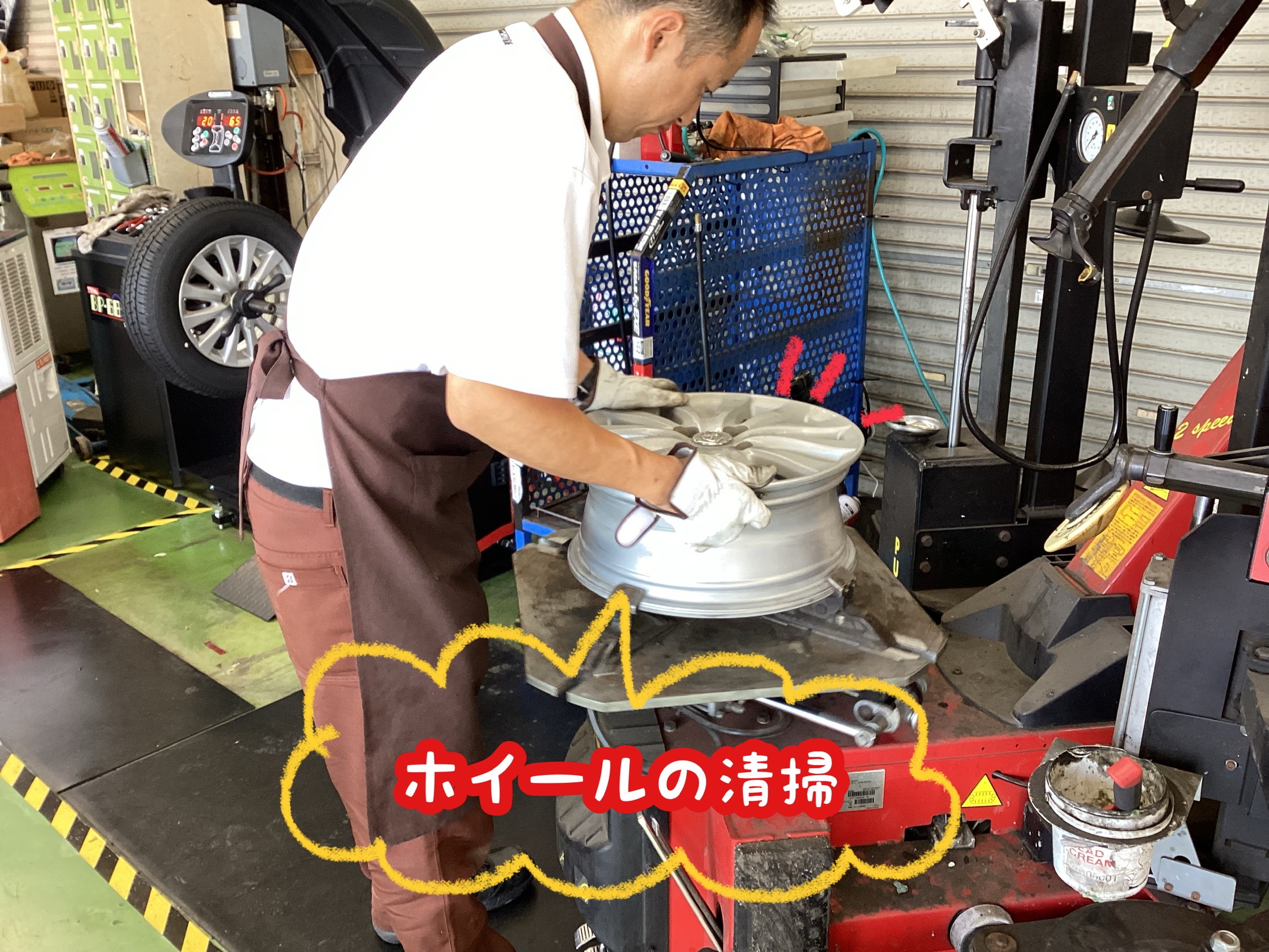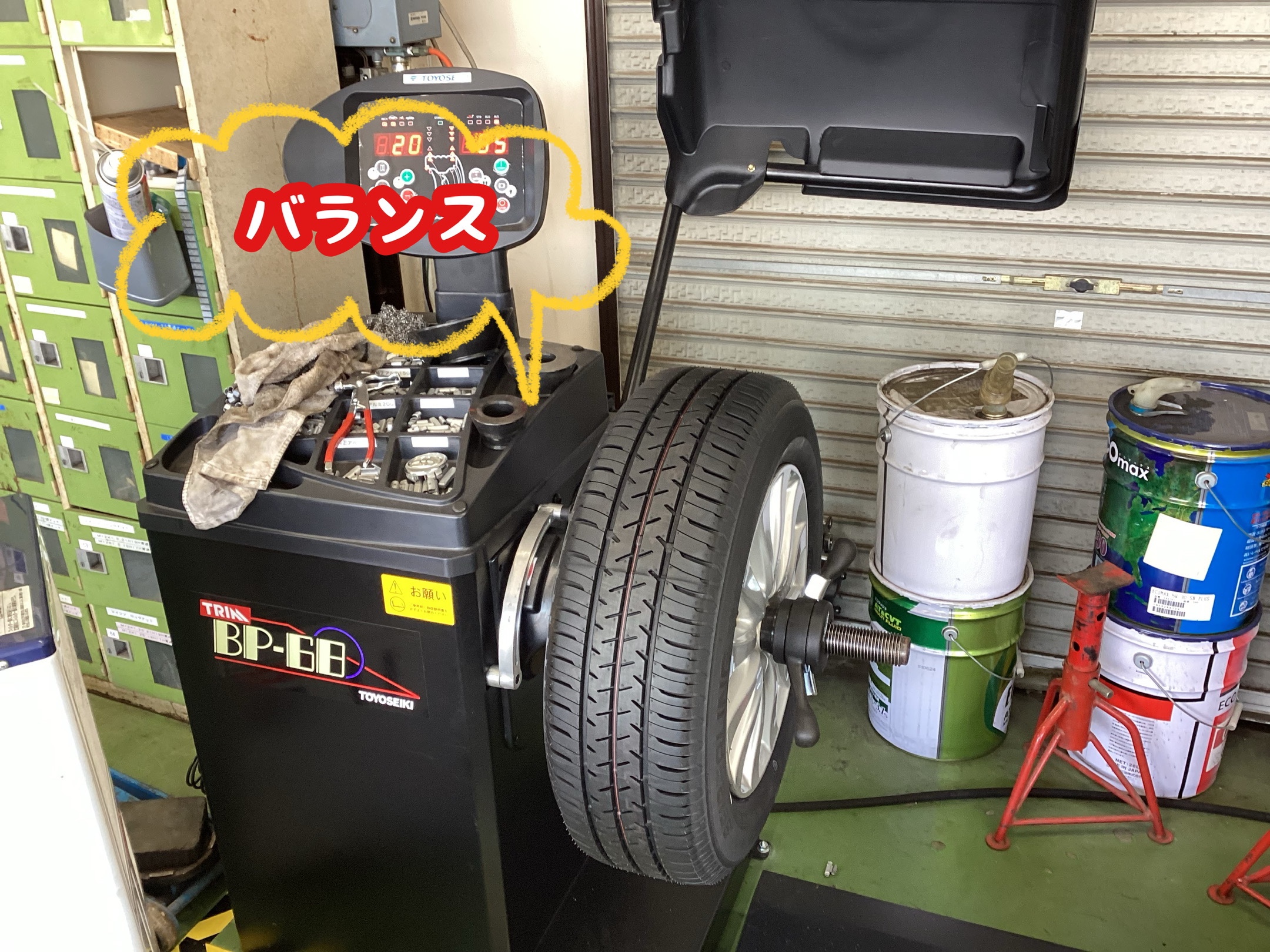 さ、エアーを入れたらホイールバランスを取ります