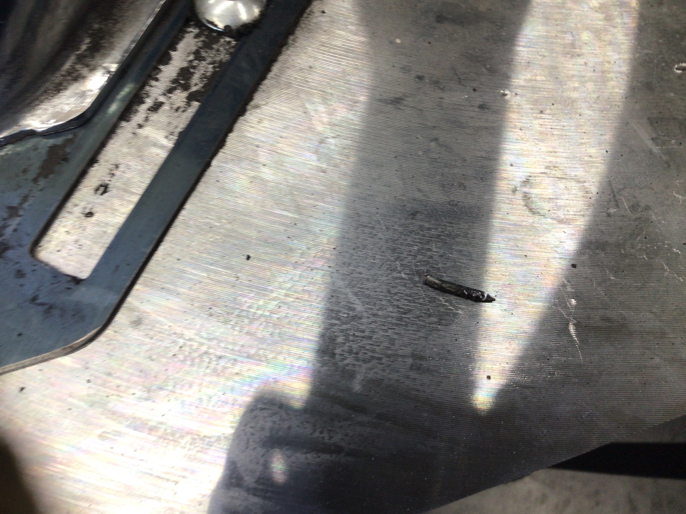 タイヤ内側の穴を中心に削り平面を出していきます。