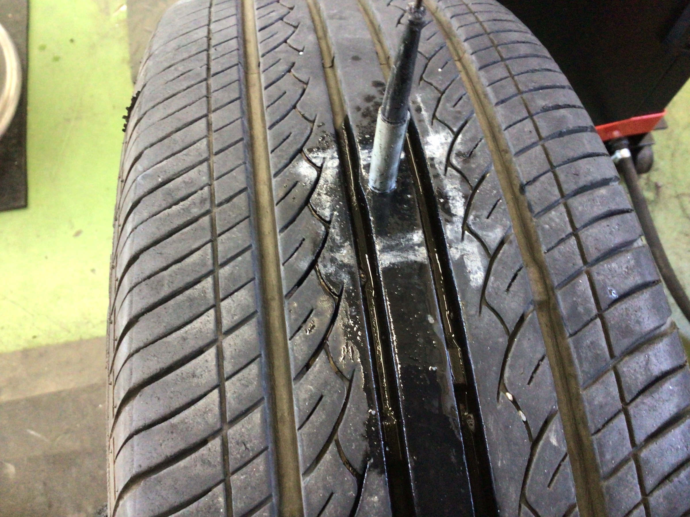 外面はタイヤの外から修理剤を入れる応急的な修理