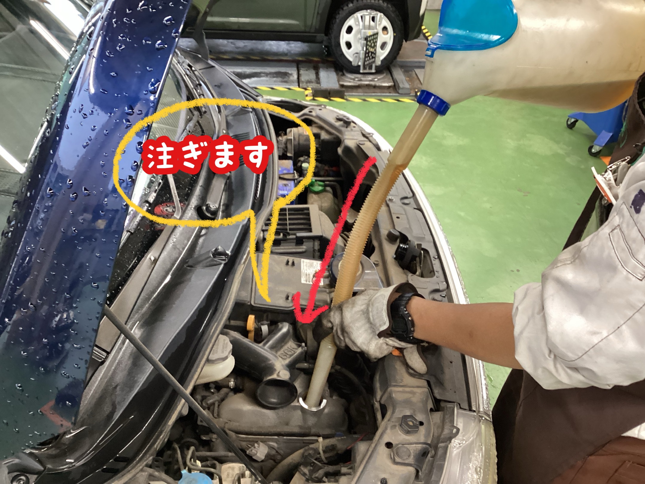 入れ終わったらエンジンを回し、再度下側の点検を行います