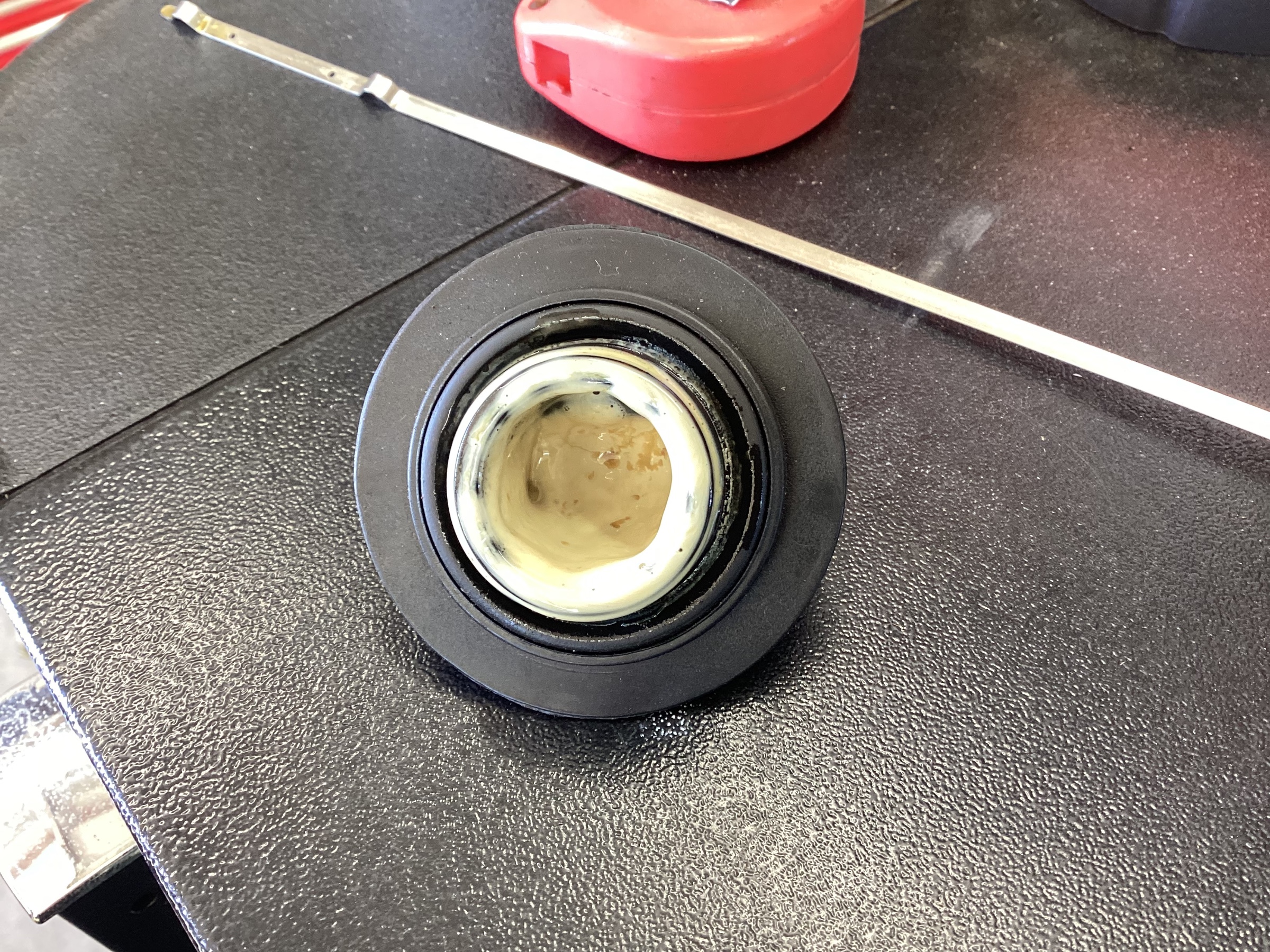 オイルフィラーキャップの裏に