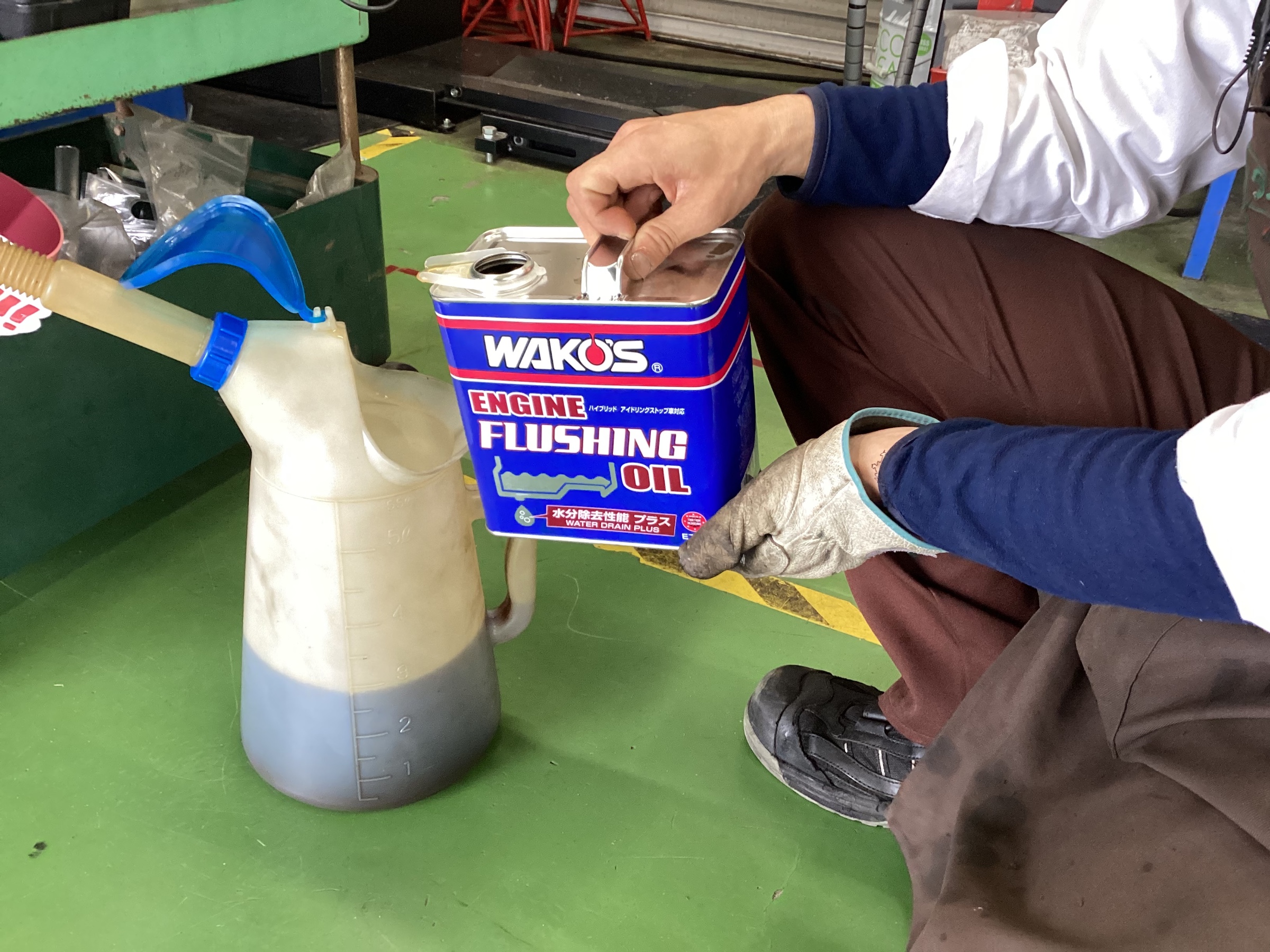 抜く前の廃油に少量を