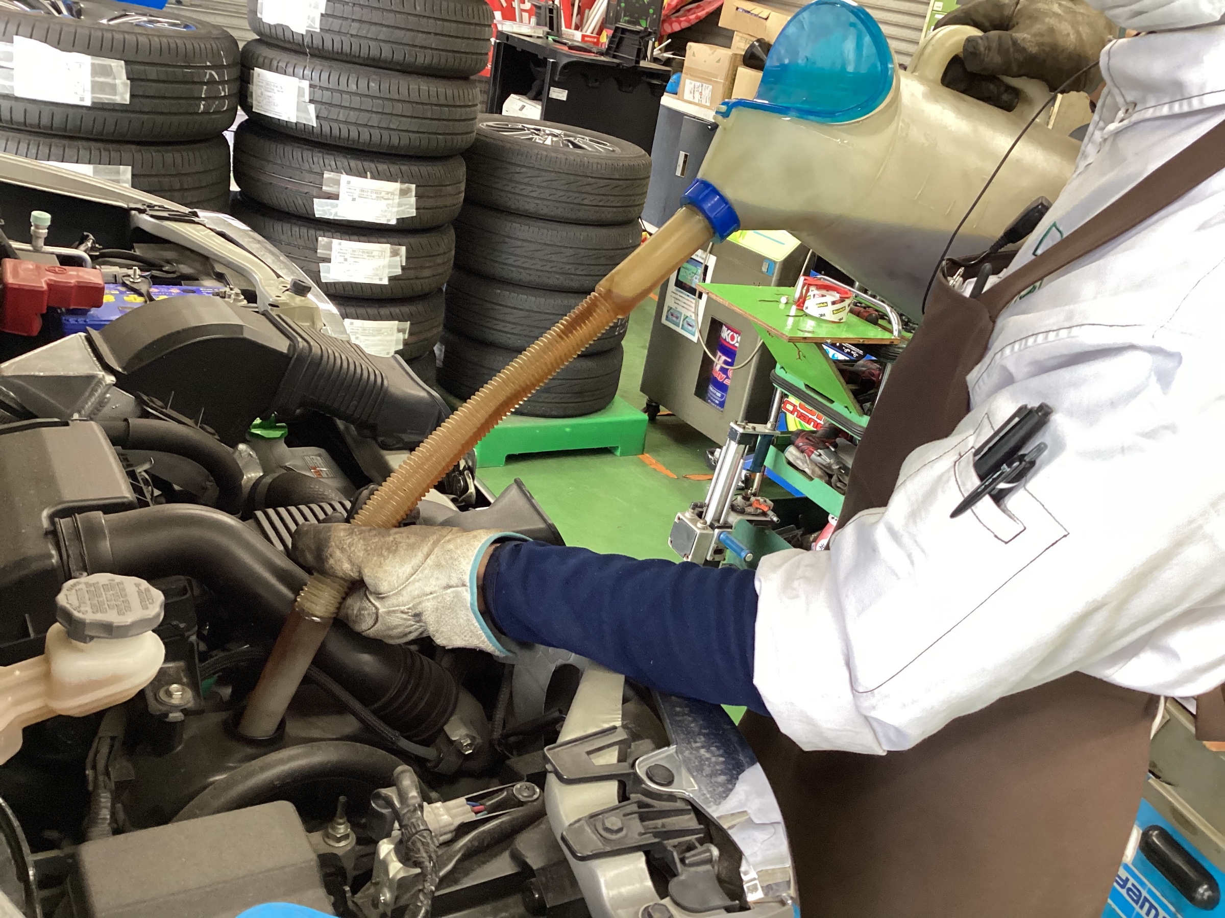 お客様にエンジンオイル交換を