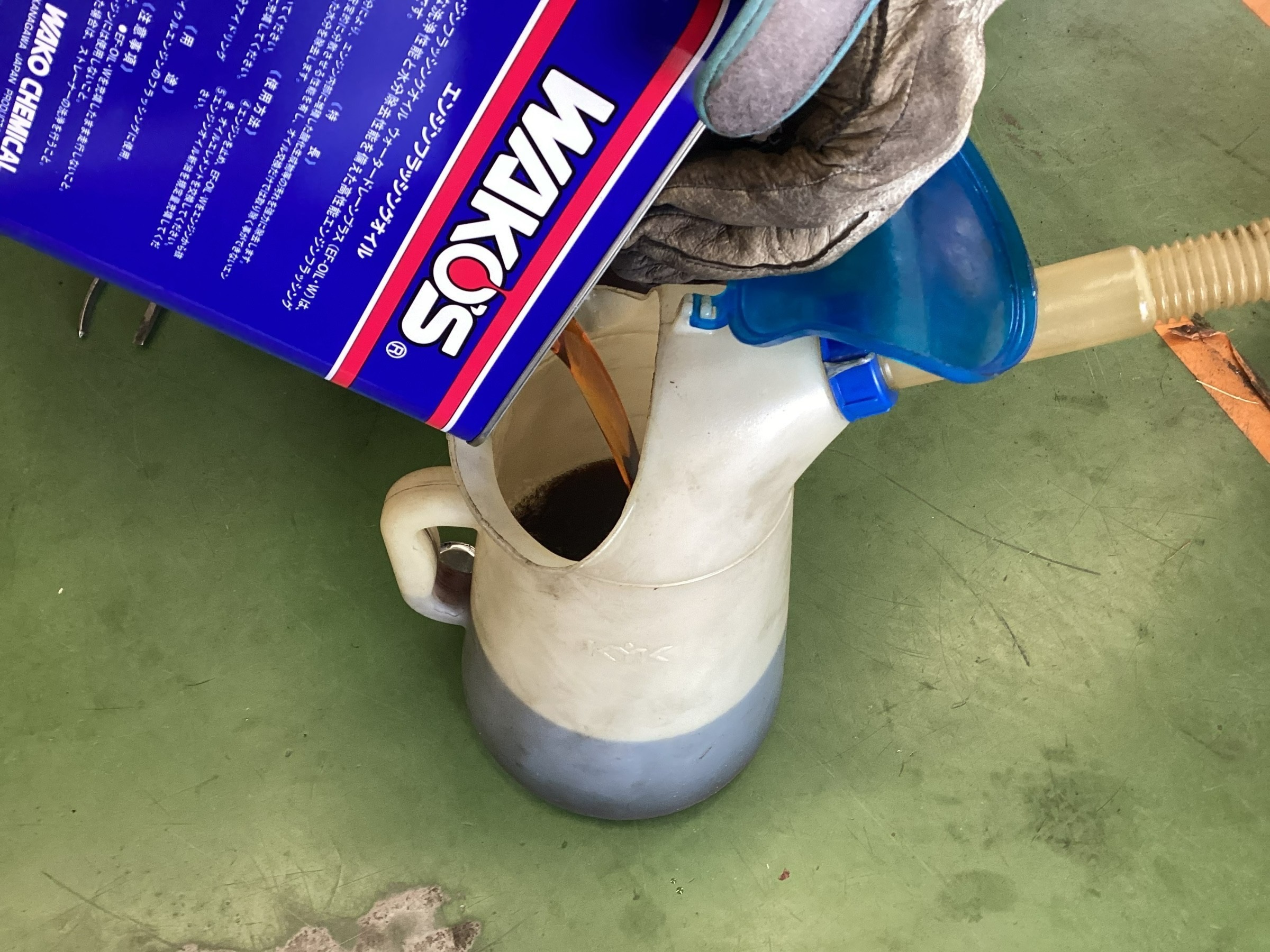 抜く前の廃油に少量を添加する