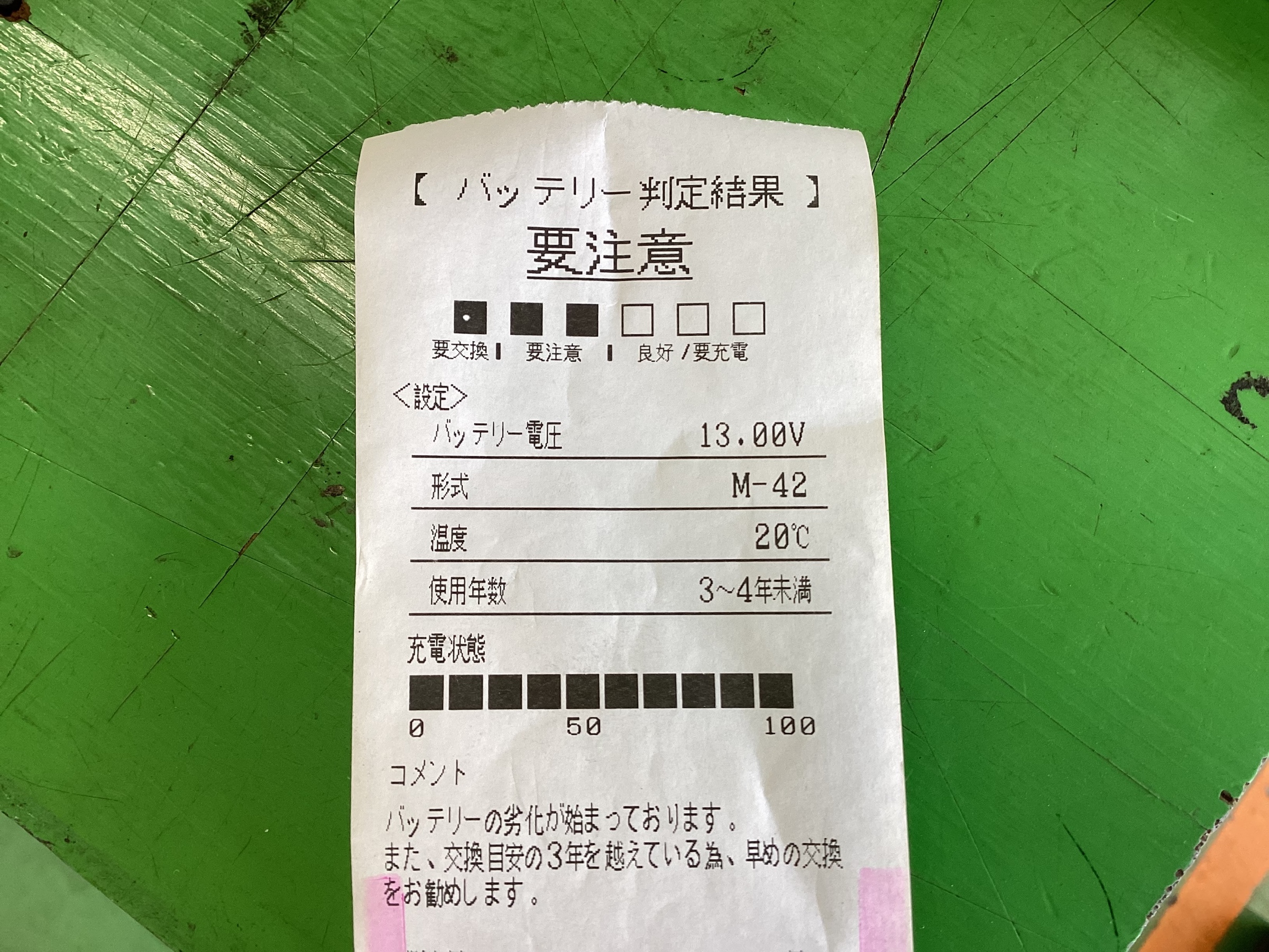 一緒にバッテリー点検を行った所、判定は