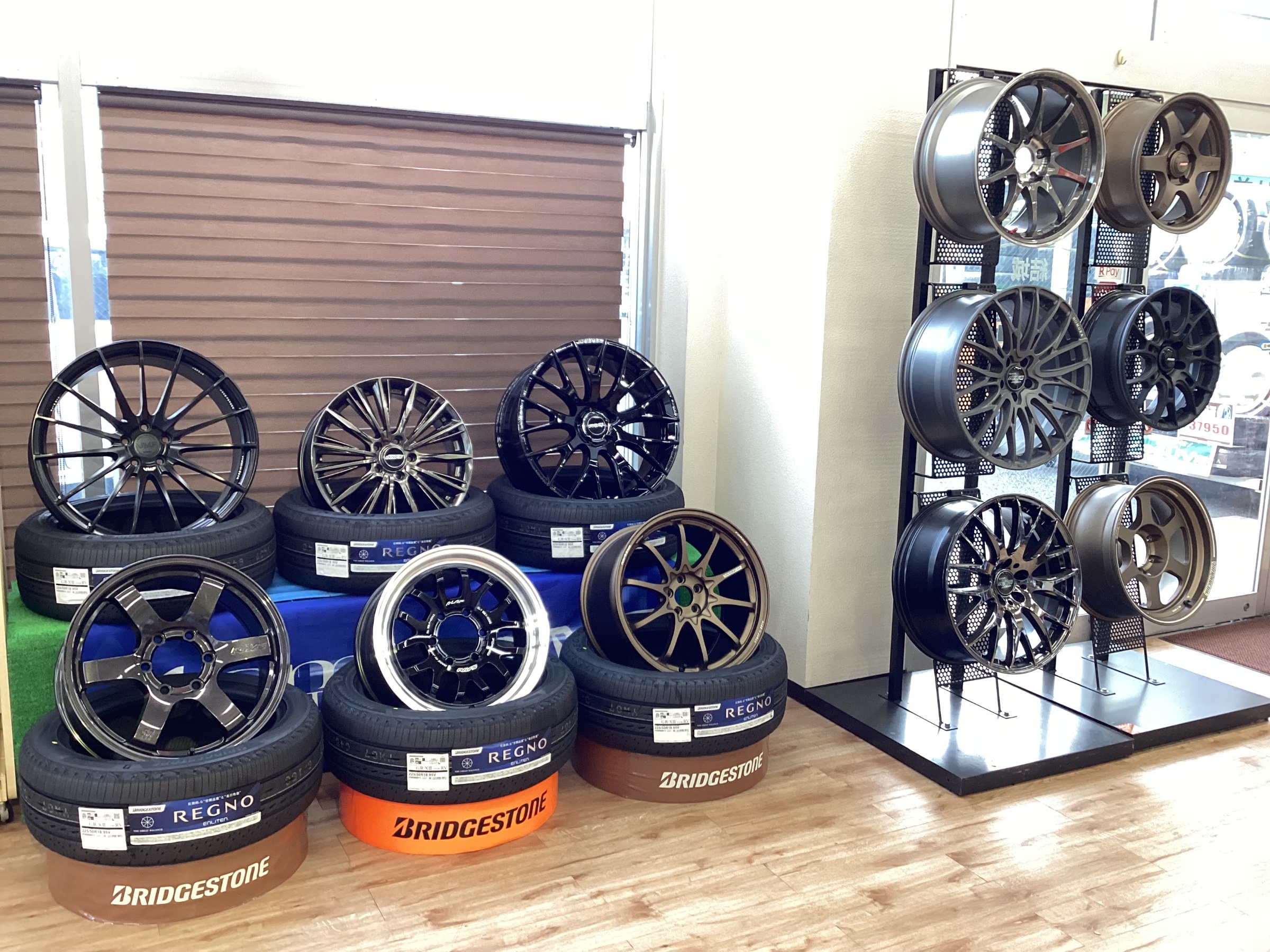 店内右のホイールラックに有るTE37・