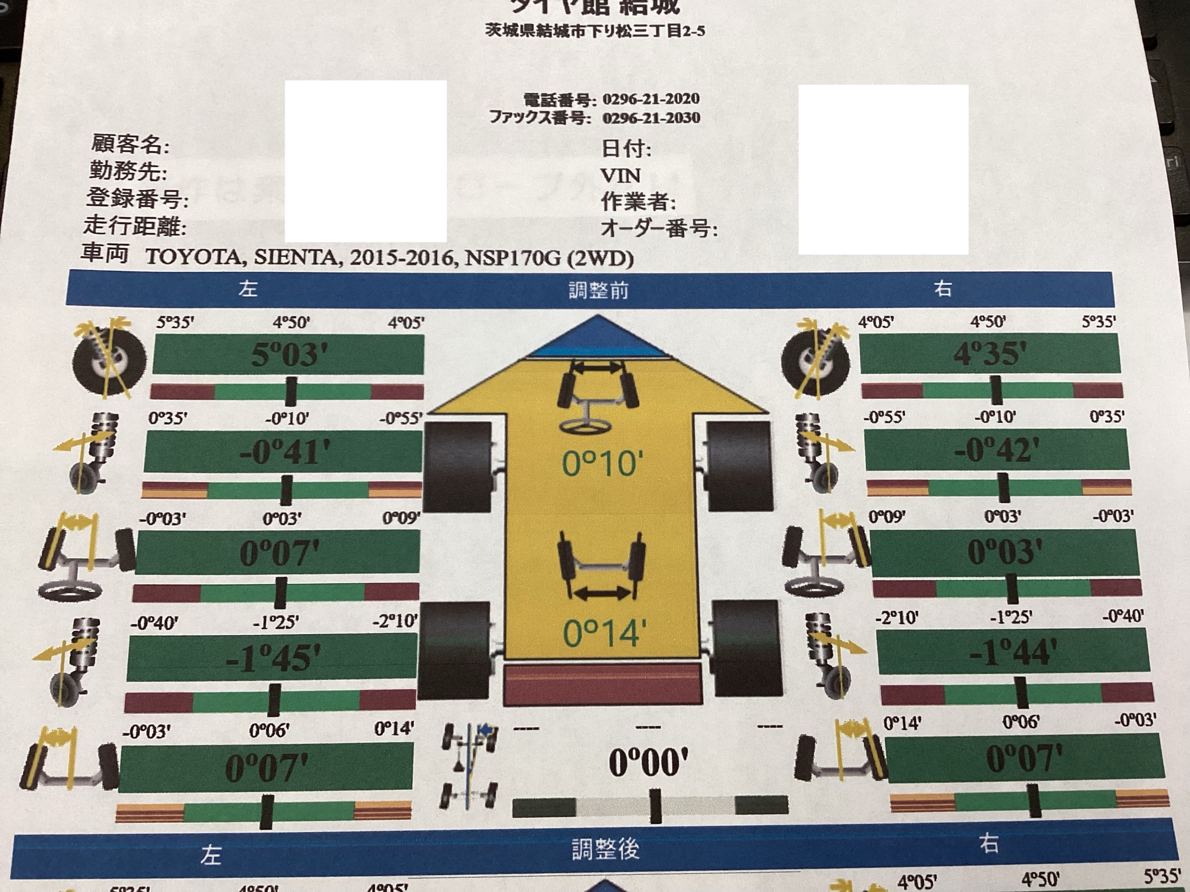シエンタ(NSP170G)インチアップしたらアライメント調整もセットで!