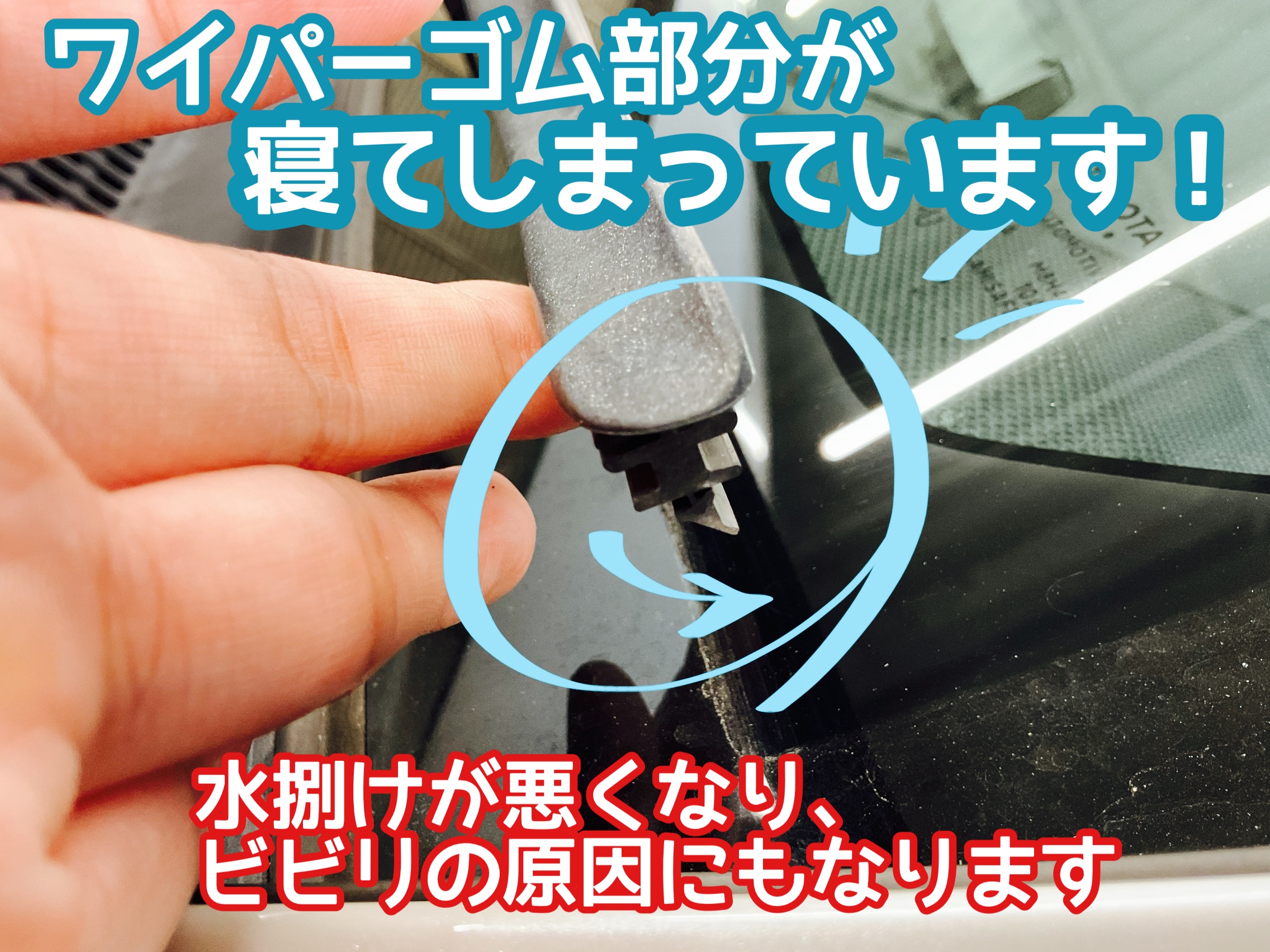 ワイパーゴムが寝てしまっています!