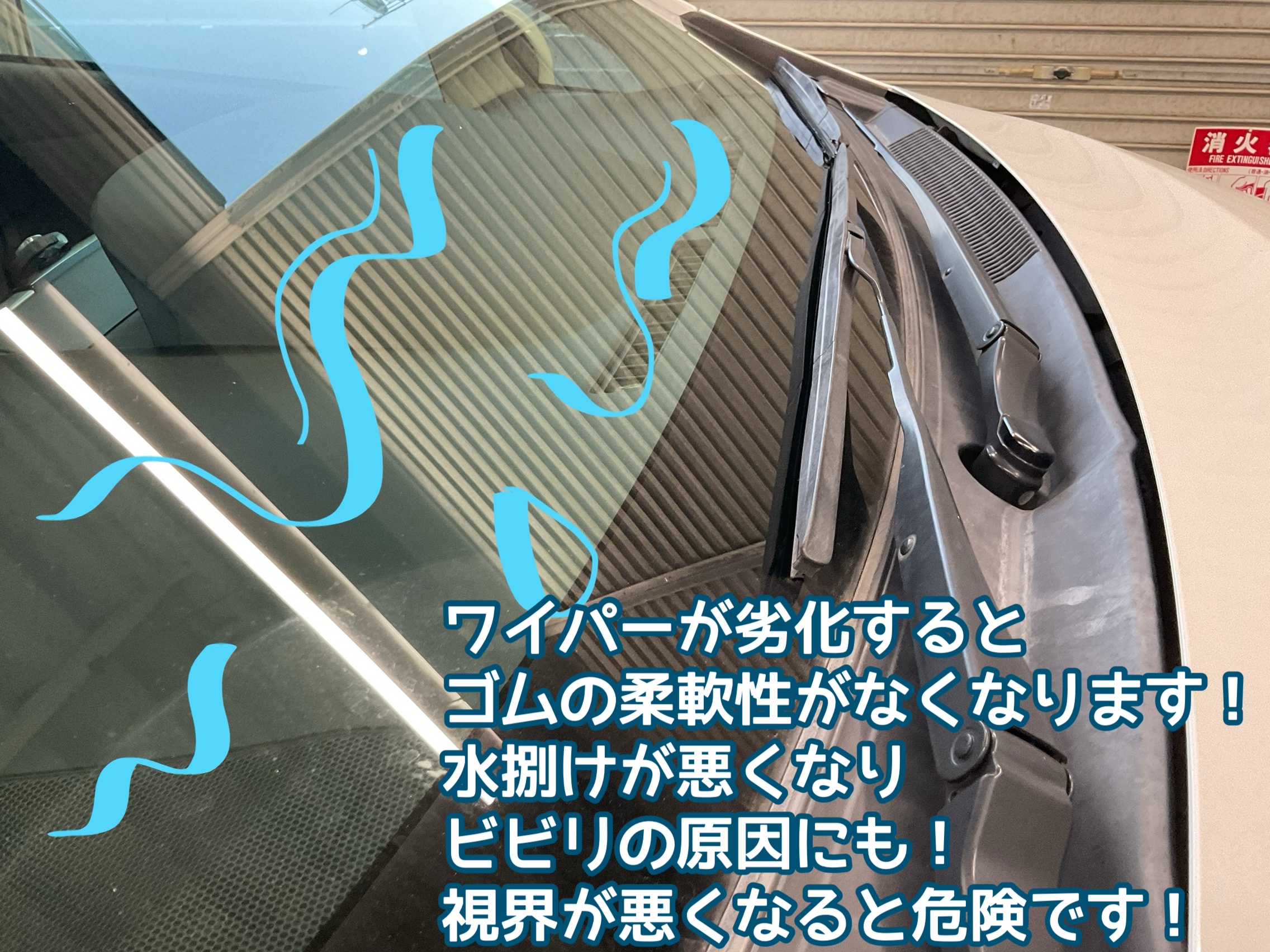 ワイパーのゴム部分は徐々に劣化し硬化します。