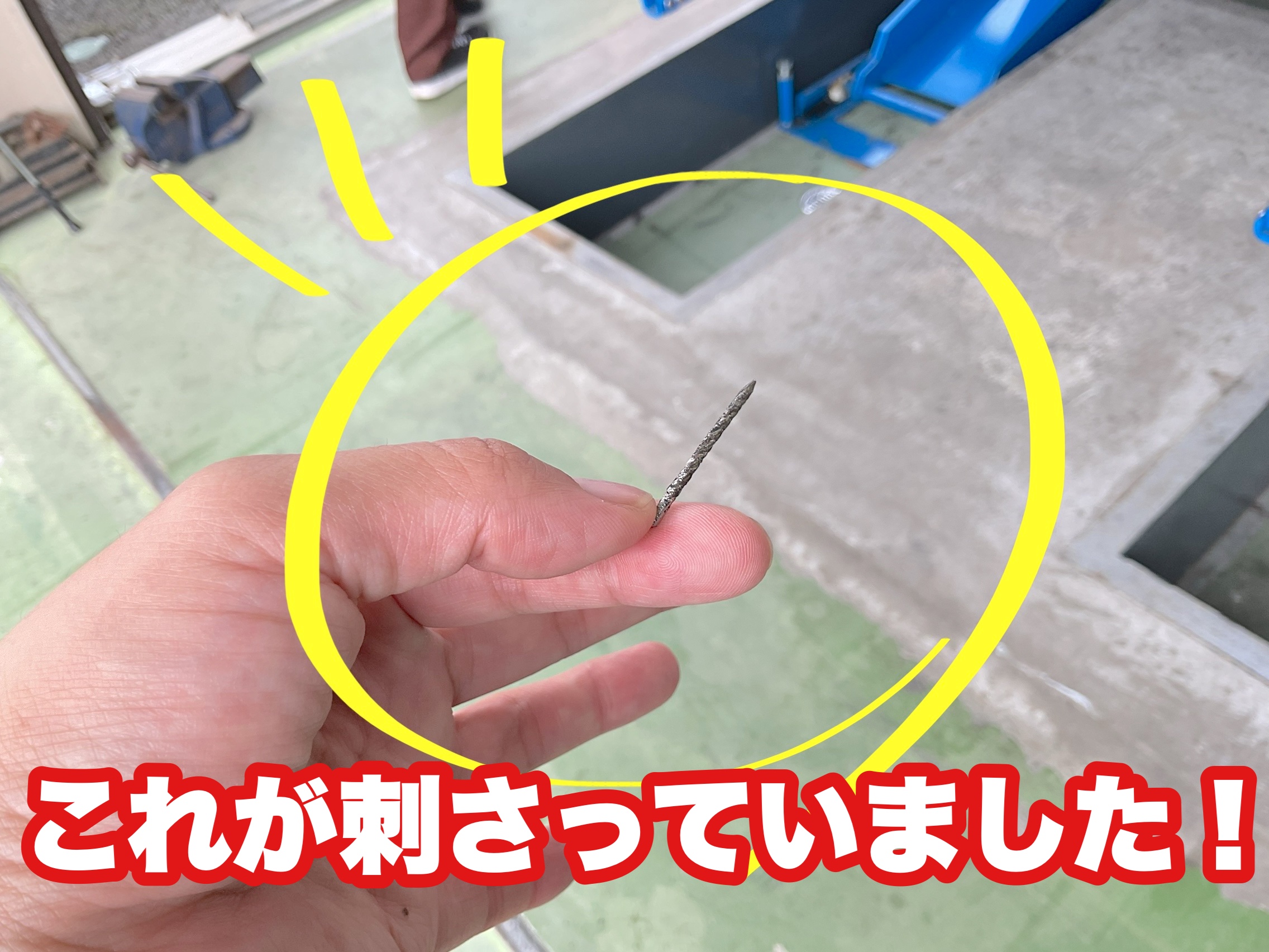 ■パンク位置が端に寄っているので内面修理材の貼り付けが不安定になってしまう可能性。