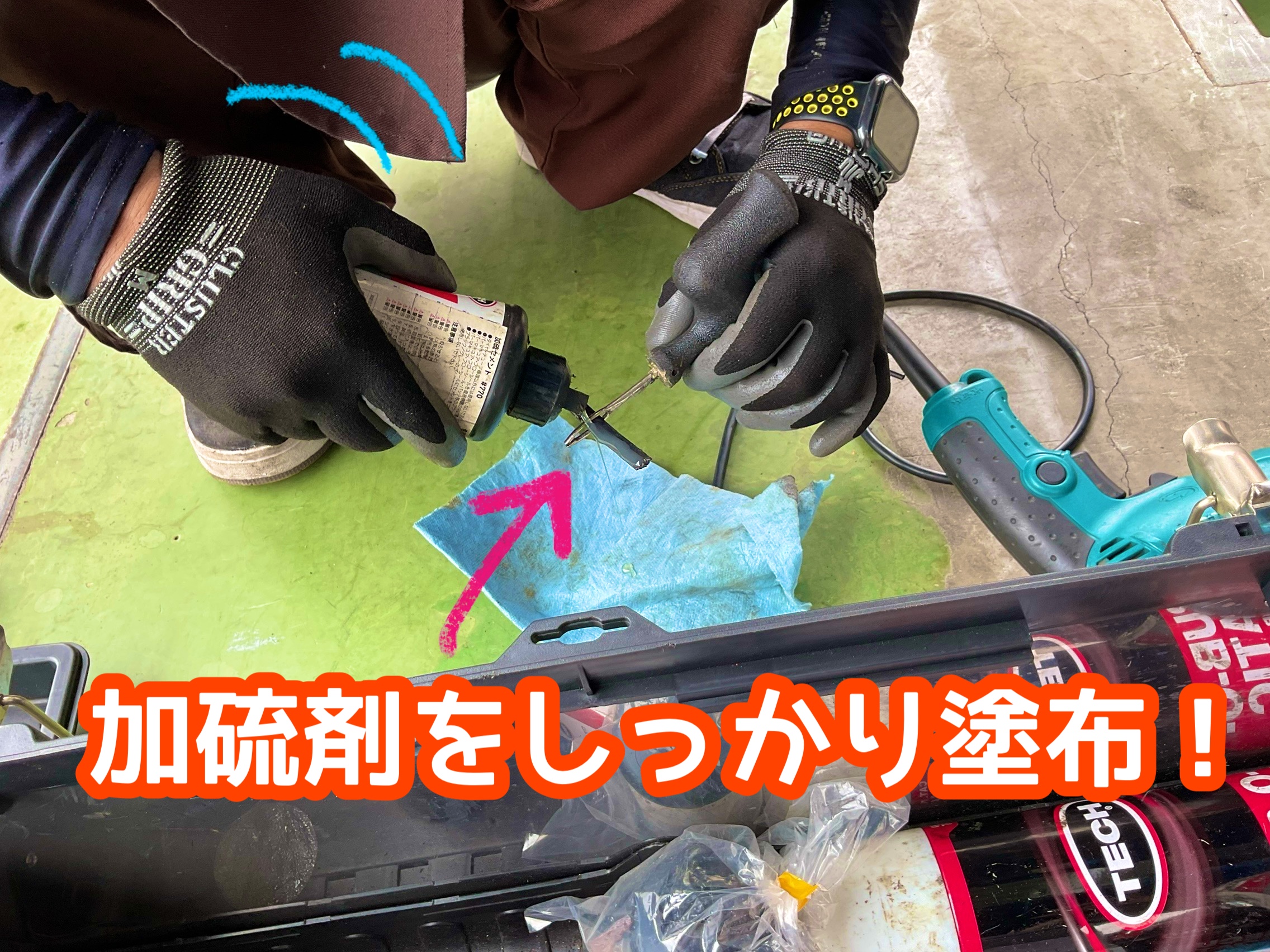 そして加硫剤をたっぷり塗った修理材を・・・・・