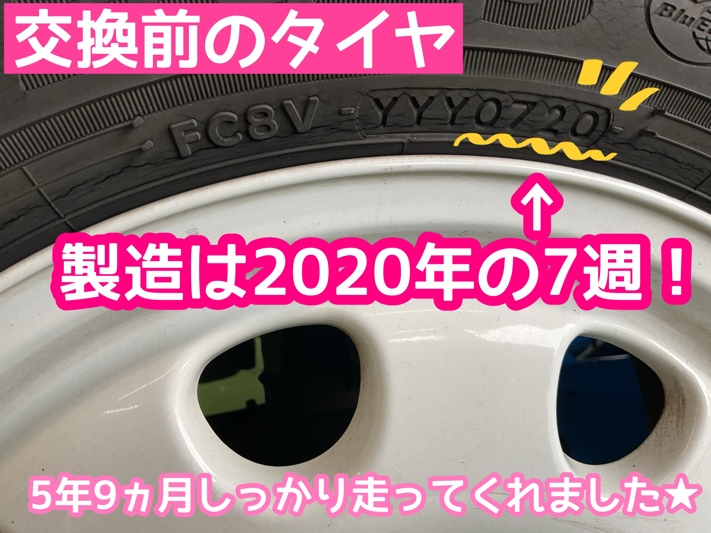 交換前にタイヤは2020年製造!