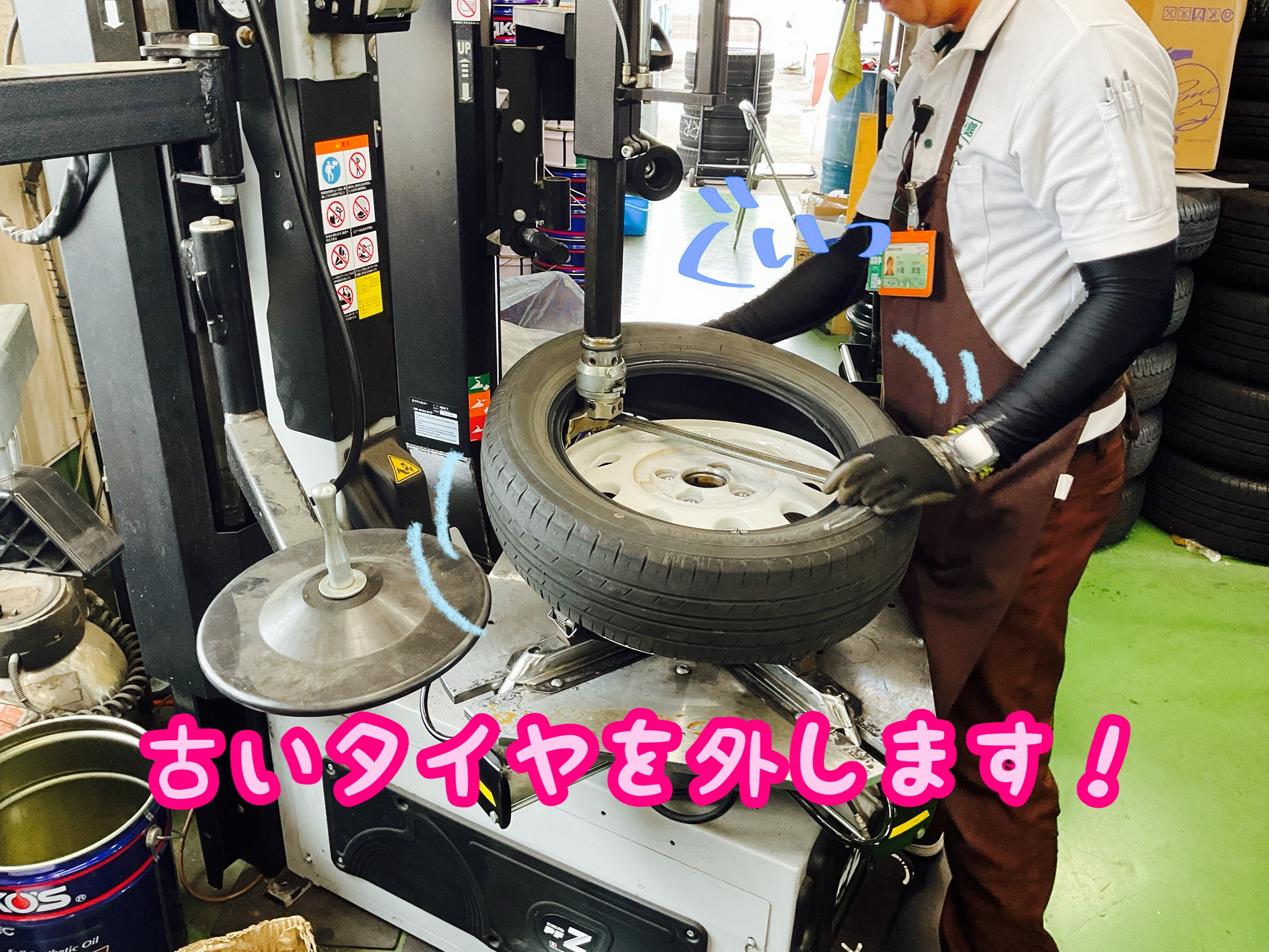 古いタイヤを外します☆