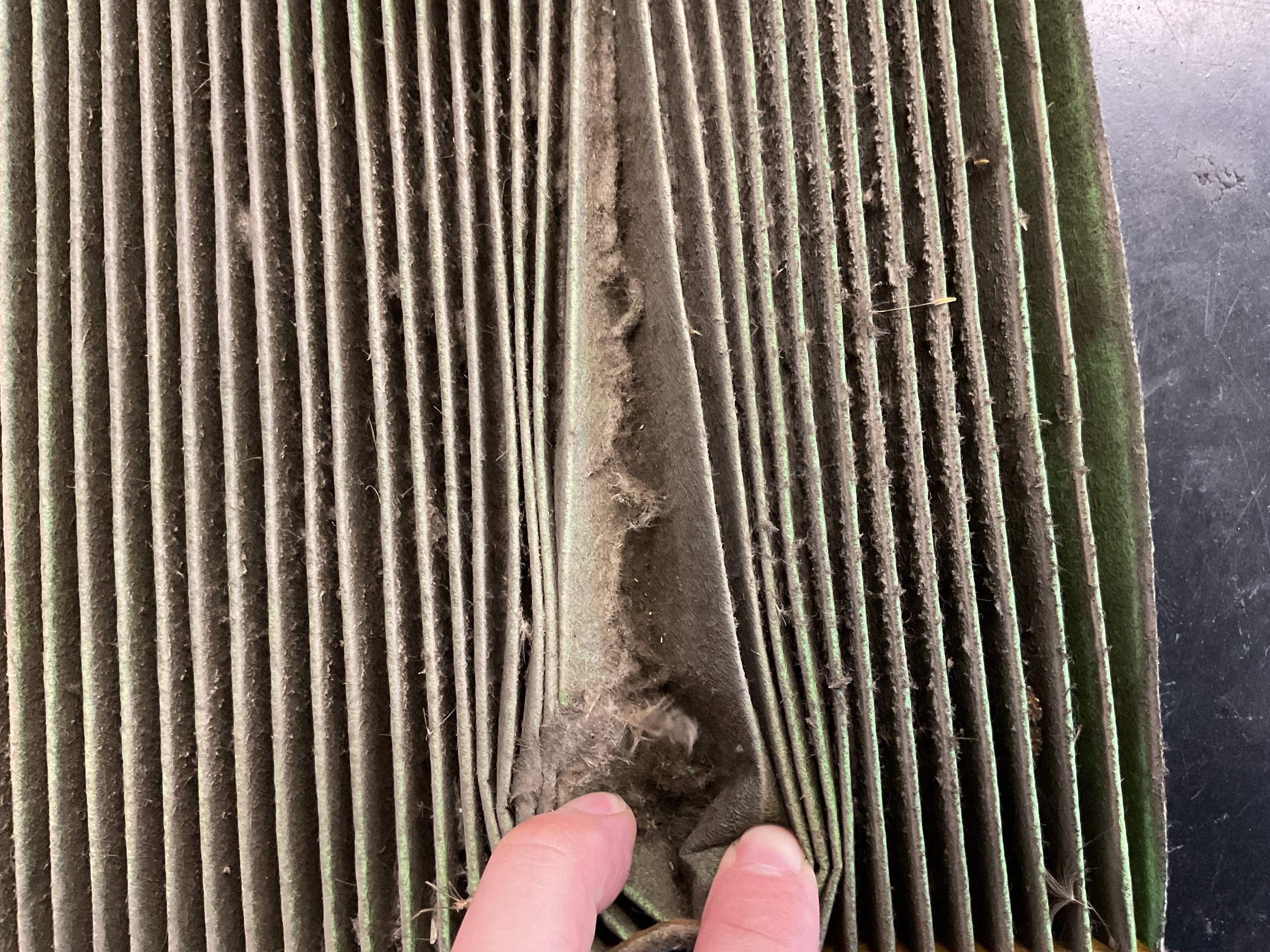 開封したエアコンフィルターです。