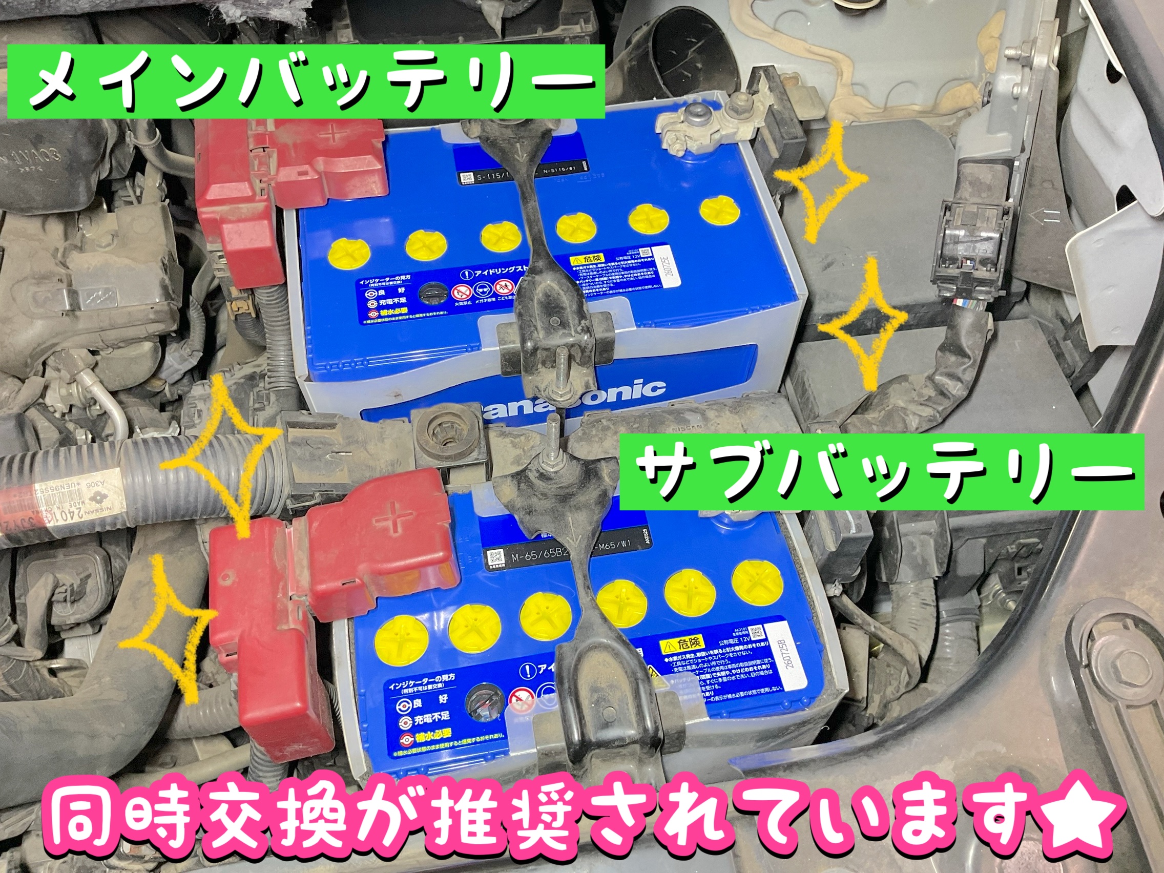 【NISSAN セレナ】Wバッテリー交換\(^o^)/