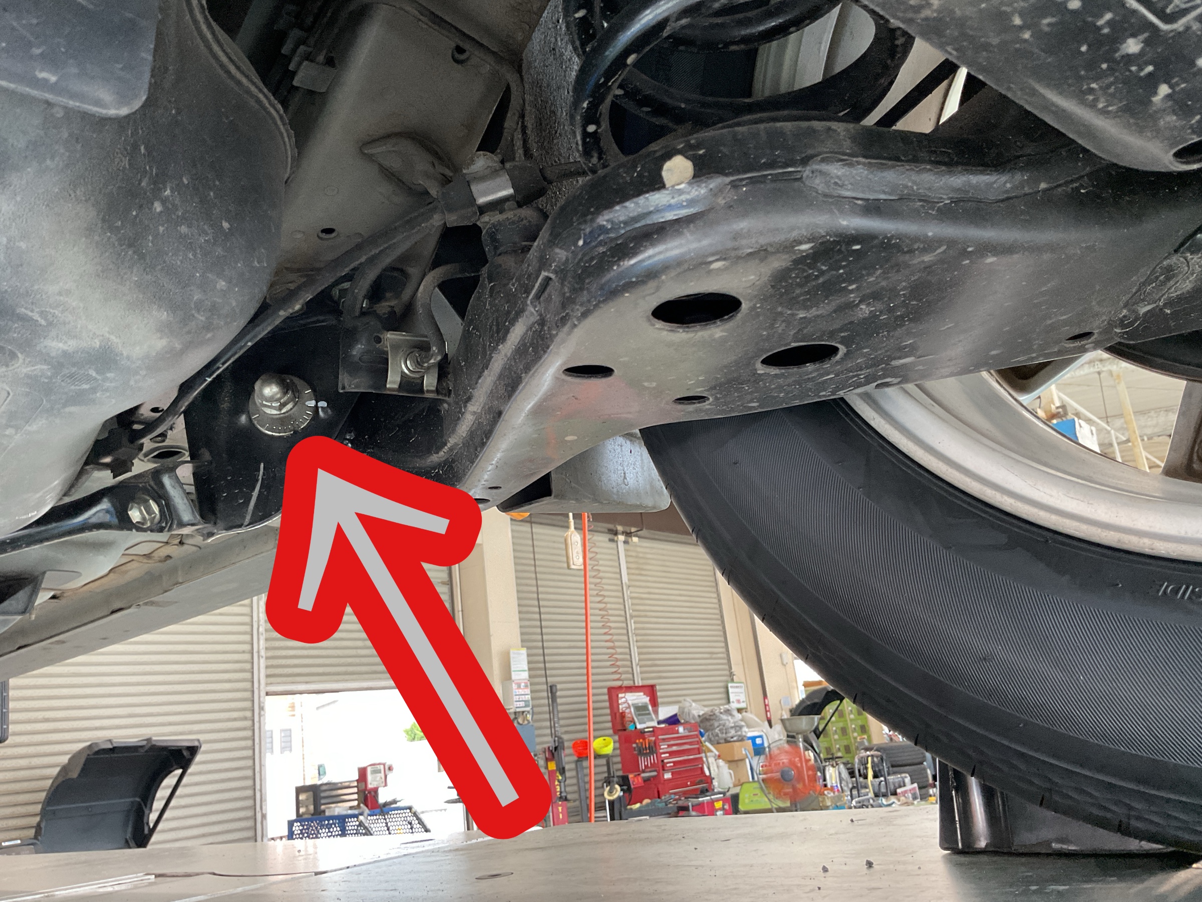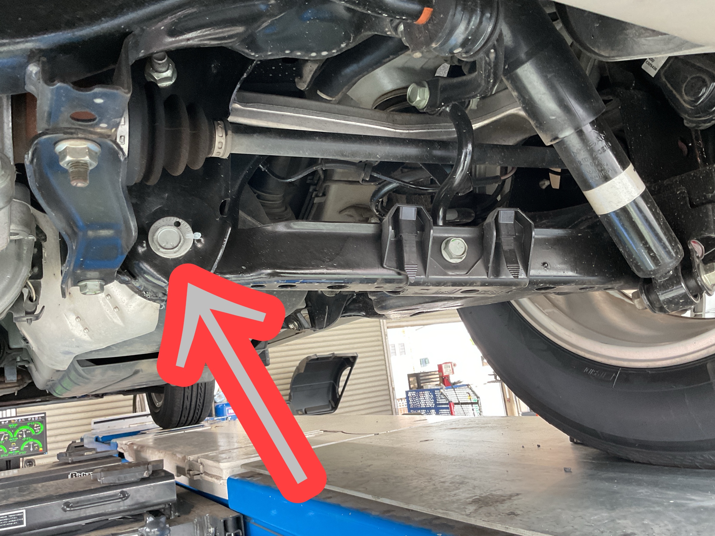 で、こちらはリアキャンバーの調整箇所に