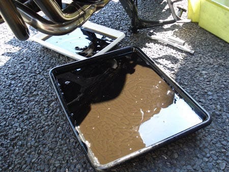 用意した受け皿ではオイルがあふれそうであせるわたくし。