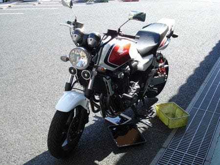 このバイクを買って初めてのオイル交換をしにきたのです。