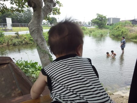 私もかき氷が出来て来るまで息子と水遊びです!!