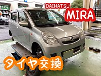 今日はこちら ダイハツ【ミラ】のタイヤ交換です 今日の画像はほとんどピントが合ってないんですが 張り切っていきましょう まずはタイヤを外します タイヤサイズは小さいですがバールのようなものを使って 迅速かつ丁寧に外していきます ホイールの清掃とゴムバルブの交換をしたら 新しいタイヤを...