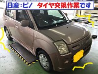 タイヤ館 結城店です!! ( `ー´)ノ 本日もご紹介!! 「結城店PIT作業」 本日のご紹介は「日産の軽自動車 PINO(ピノ)のタイヤ交換作業です!!」 早速!! 「お車の入庫です!!」 (^^)/ 日産自動車の軽 「PINO(ピノ)」 2007年~2010年の3年間に発売された 「スズキ:アルトのOE車」 車名...