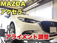 雨ってちょっと憂鬱。梅原です。 雨続きで気温低めの最近ですが火曜あたりから気温が上がるようです。 服装に注意していきましょう さて本日の作業紹介。 マツダ・アクセラのアライメント調整になります! 3代目のBM系ですね。 ちなみにこの後モデルチェンジでマツダ3になりましたが元々ファミリア...