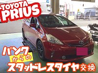 トヨタ【プリウスα】パンクからのスタッドレスタイヤ交換\(^o^)/
