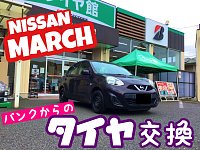 ニッサン【マーチ】パンクからのタイヤ交換\(^o^)/