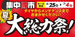 予告です。こんにちは、塙です 今日もタイトルが全てです そんな感じで現在ホイールイベント開催中ですが それと同時に、夏の大総力祭と称して 集中得市が開催です!!!! 期間は25日(金)から7月4日(日)までです! と、いうことは、期間のかぶっている3日間の間に 足廻りのドレスアップをお得にで...
