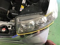 やっと雨が上がりましたね。こんにちは、塙です 台風は逸れたみたいで安心しました さて今回は最近始まったヘッドライトコーティングの紹介です 作業したお車は日産のエルグランドです 街中でよく見る車ですね 施工前です ボディーに傷がつかないようライトの周りをマスキングします 白のテープなの...