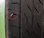 またもや、この時期のアレです‼️ パンクです‼️ しかも、今回はタイヤの空気圧が無い 状態で走行したとの事。 赤いラインのところがタイヤが潰れて走行した痕です。 こうなると、もうタイヤ自体がダメになってます。 こうなる前に、スペアータイヤなどに交換すると パンク修理ですんだかも知れません...