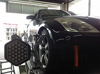 本日の作業は〜Z33のアライメント!! 足廻りを純正に戻したのでアライメントのご依頼。 リアがかなりトゥインですね!! しっかり調整させて頂きました!! 本日もご利用ありがとうございました