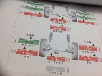 昨日の続きです。 リフトアップしたので走行後馴染ませてからアライメントです。 全体的にズレが有りますので直せる範囲で調整しました。 フロントキャンバーもガタで少し。。 良い感じになりましたね^^ 本日はご利用ありがとうございました!!