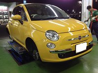 FIAT500 チンクチェントのお客様が持込タイヤの交換で御来店致しました。 ありがとうございます。 アライメントも調整させて頂きました。 持込タイヤも交換いたしますのでお気軽にご相談ください!! 外国車の作業も当店にお任せください!!