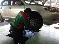 本日はアクセラにお乗りのお客様からタイヤ交換の御依頼。 花粉の為重装備。 オノさん戦っております。 帽子はボディに当たらないようにたまに逆かぶり。 交換したタイヤは REGNO GR-XIです。REGNOユーザーですので、おかわりになります^^ いつもありがとうございます^^ 以前と...