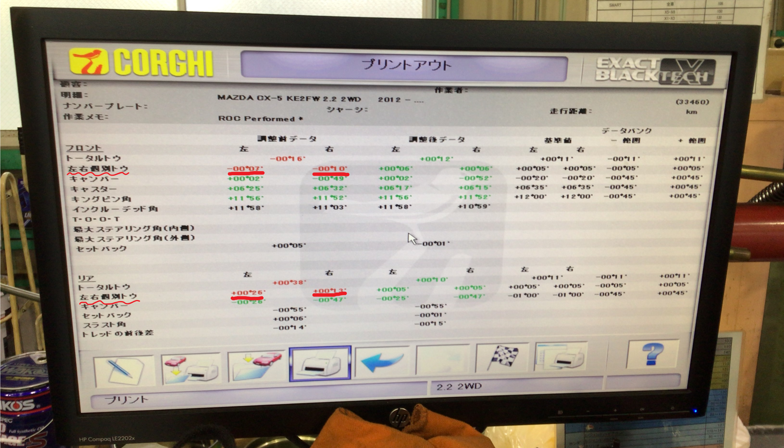 また、距離数が約12万キロほど走られてるお車でしたのでアライメント作業も行わさせていただきました!